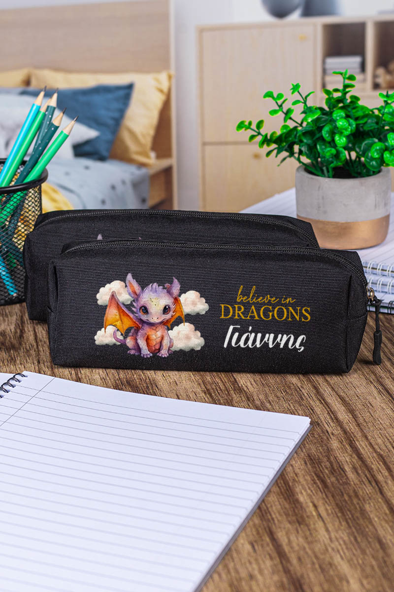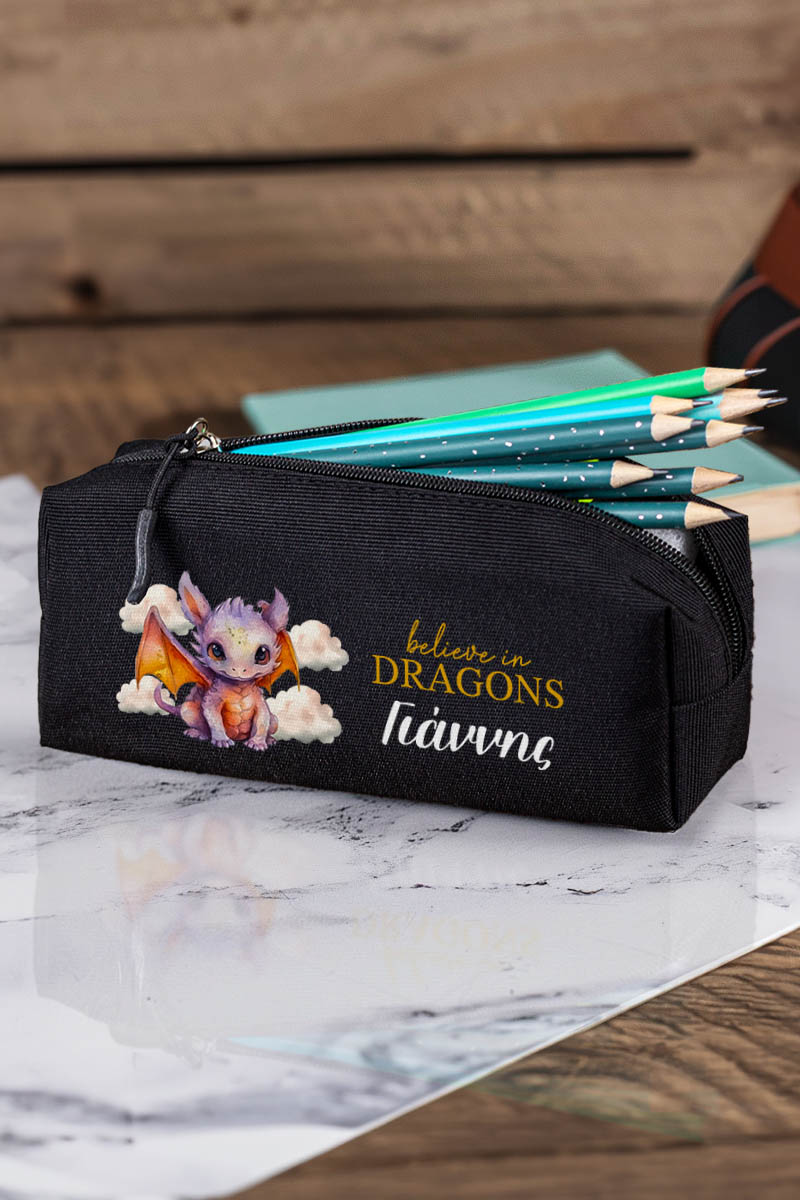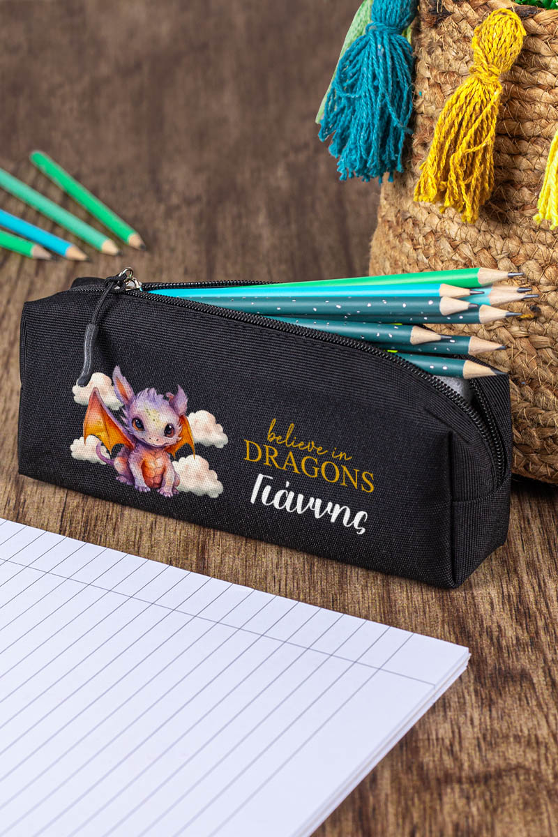Σχολική Κασετίνα με Όνομα, σε Μαύρο Χρώμα & Σχέδιο Δράκος