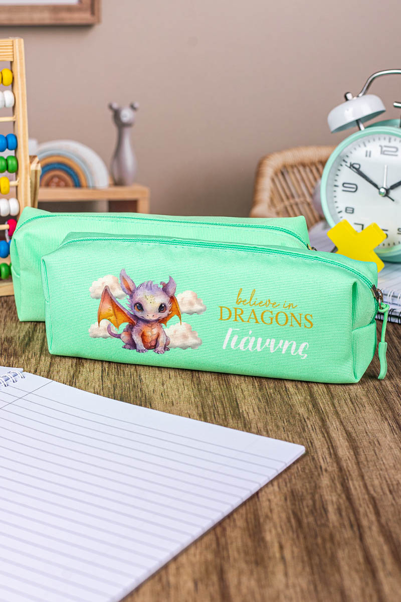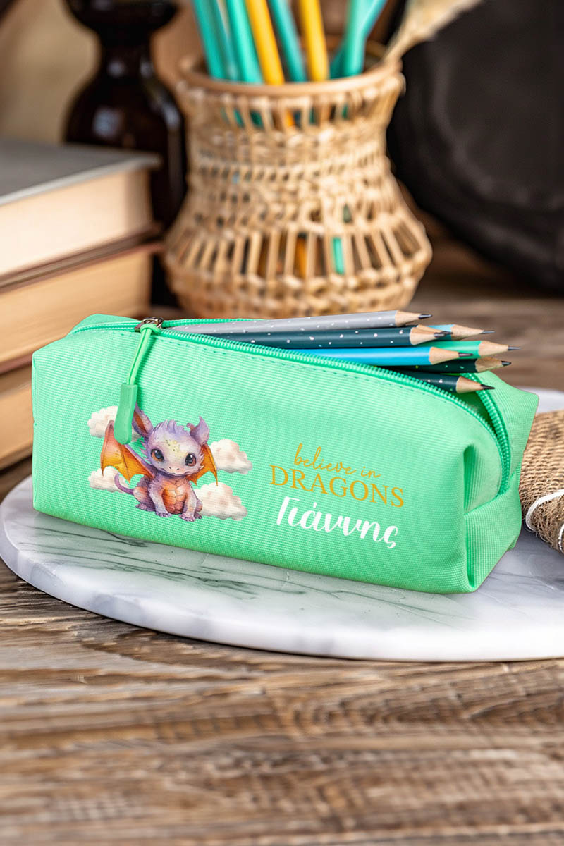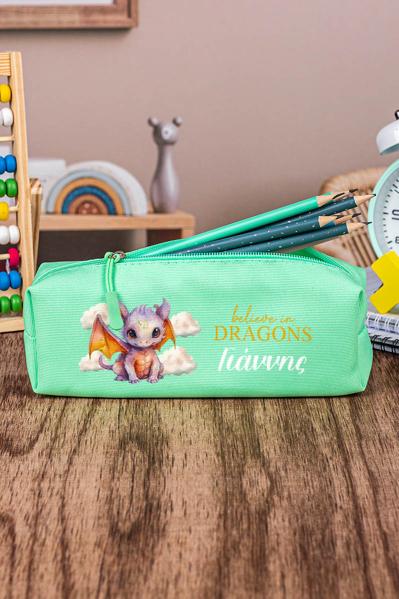 Σχολική Κασετίνα με Όνομα, σε Πετρόλ Χρώμα & Σχέδιο Δράκος