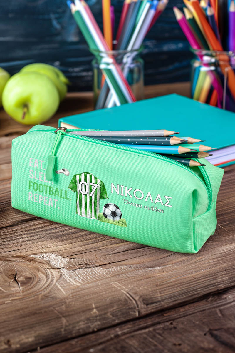 Σχολική Κασετίνα με Όνομα, σε Πετρόλ Χρώμα & Σχέδιο Φανέλα 3