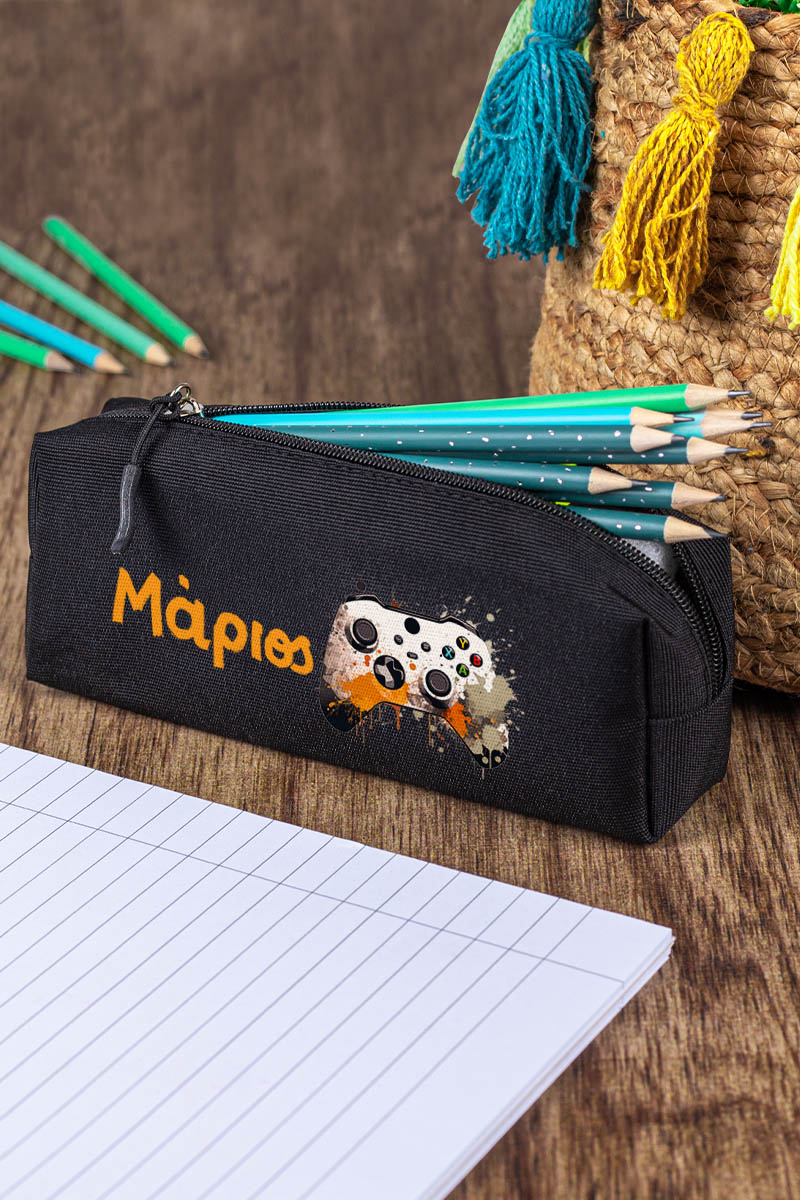 Σχολική Κασετίνα με Όνομα, σε Μαύρο Χρώμα & Σχέδιο Game Χ