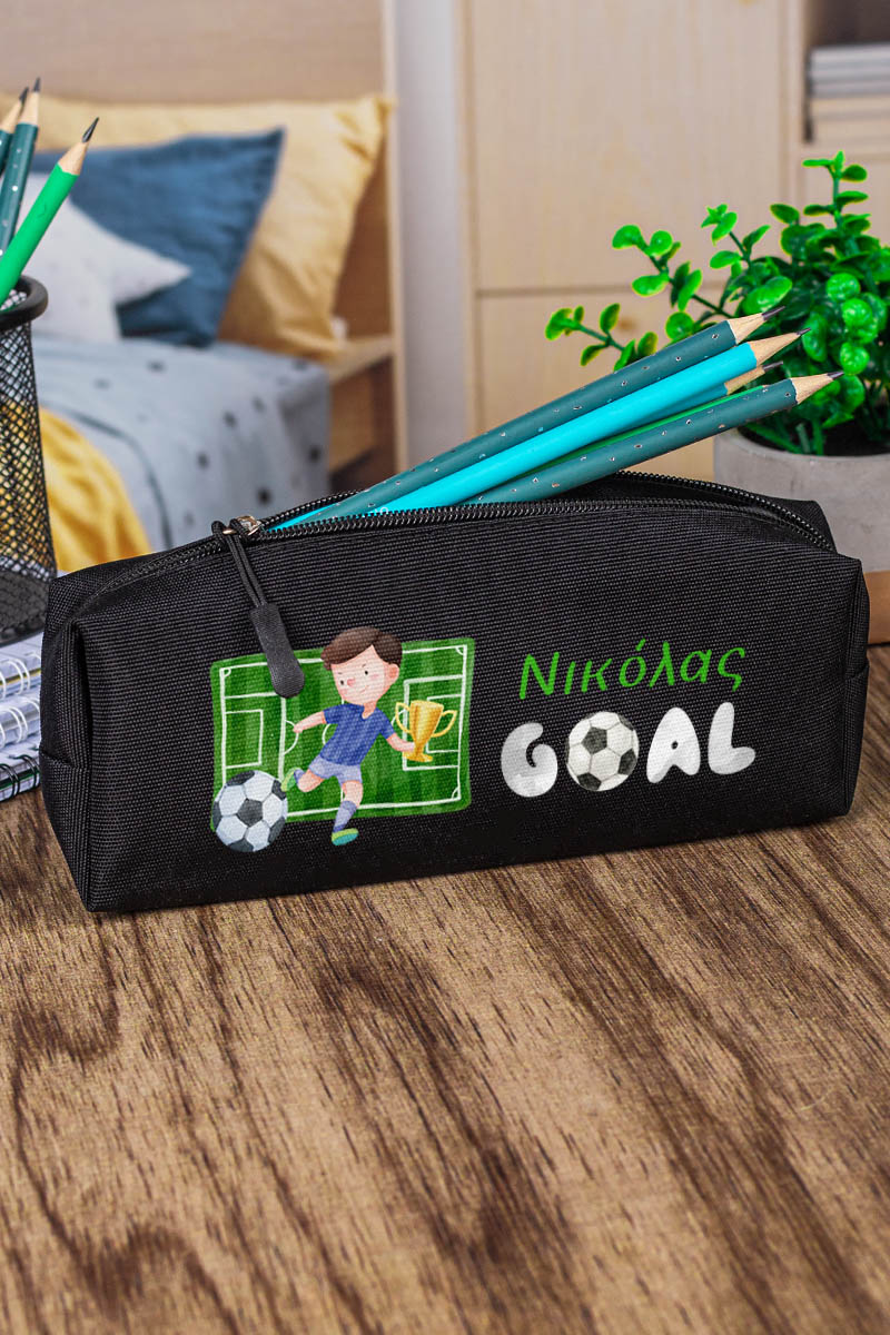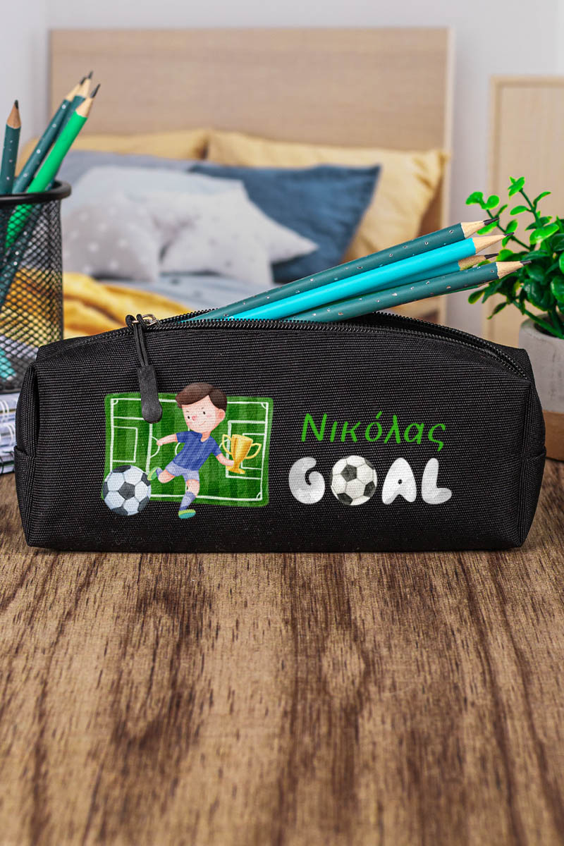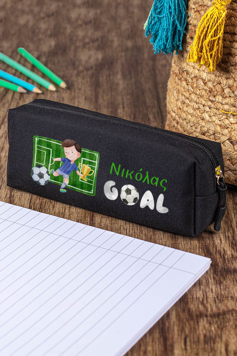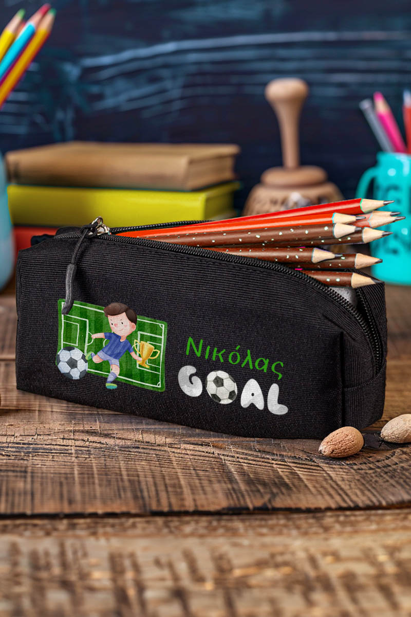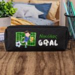 Σχολική Κασετίνα με Όνομα, σε Μαύρο Χρώμα & Σχέδιο Γήπεδο