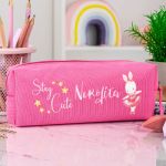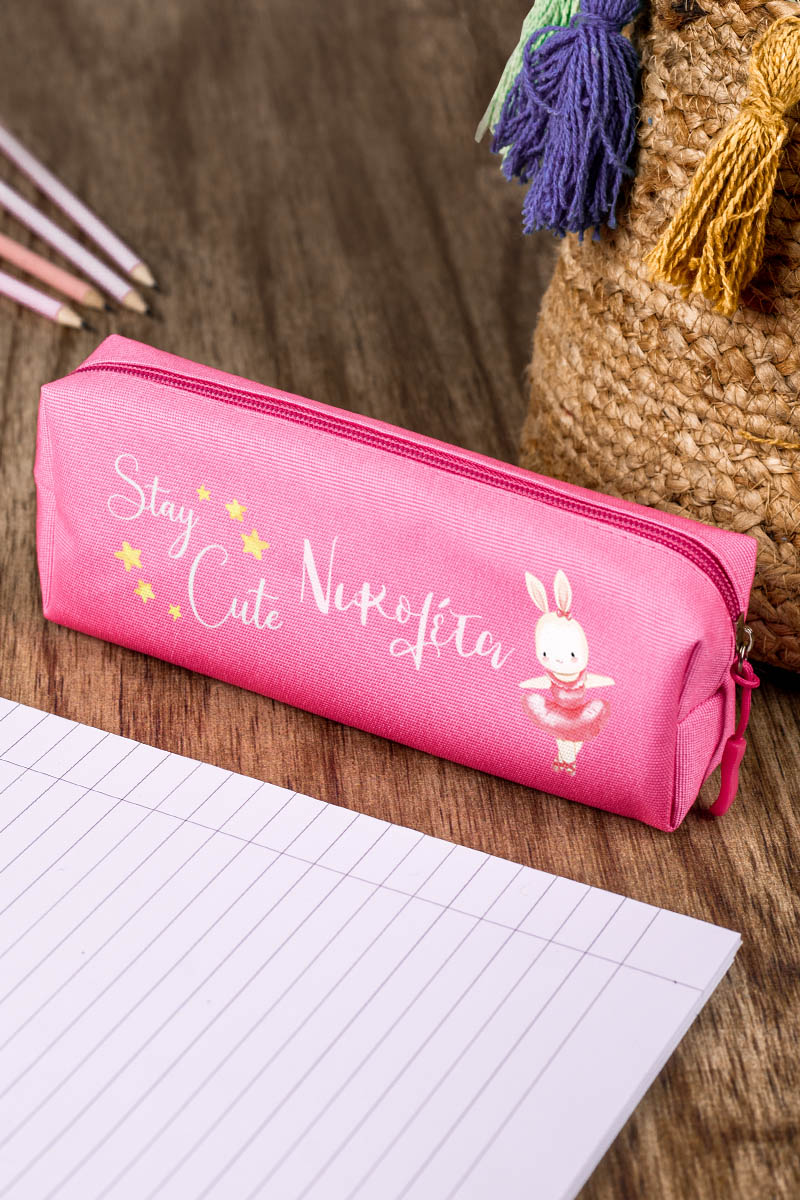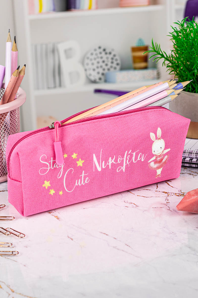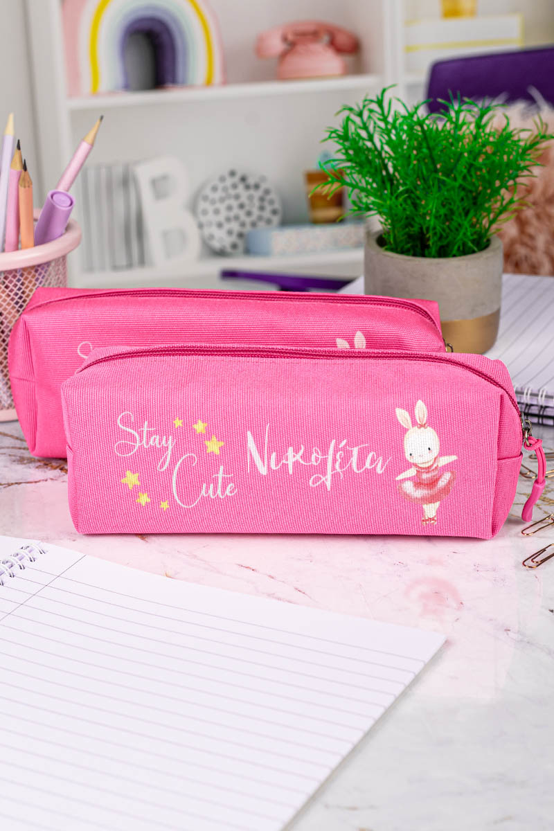Σχολική Κασετίνα με Όνομα, σε Φούξια Χρώμα & Σχέδιο Κουνελάκι