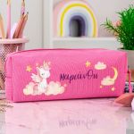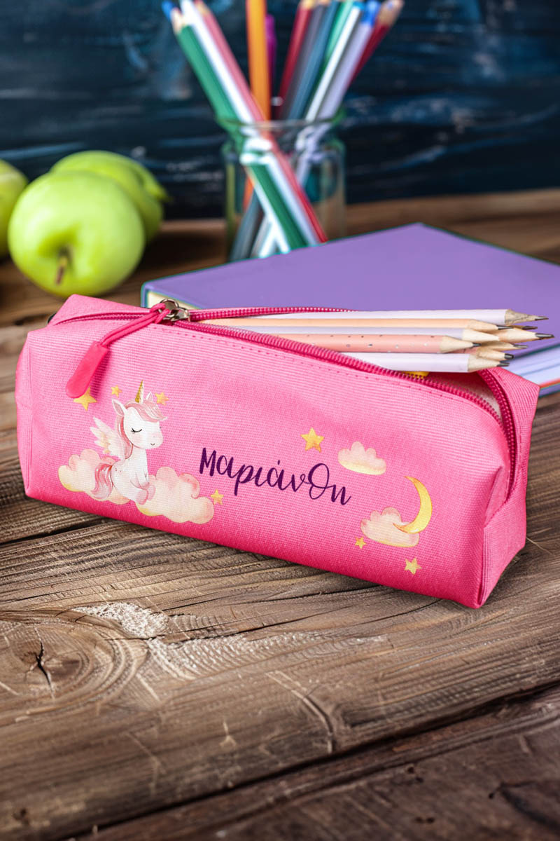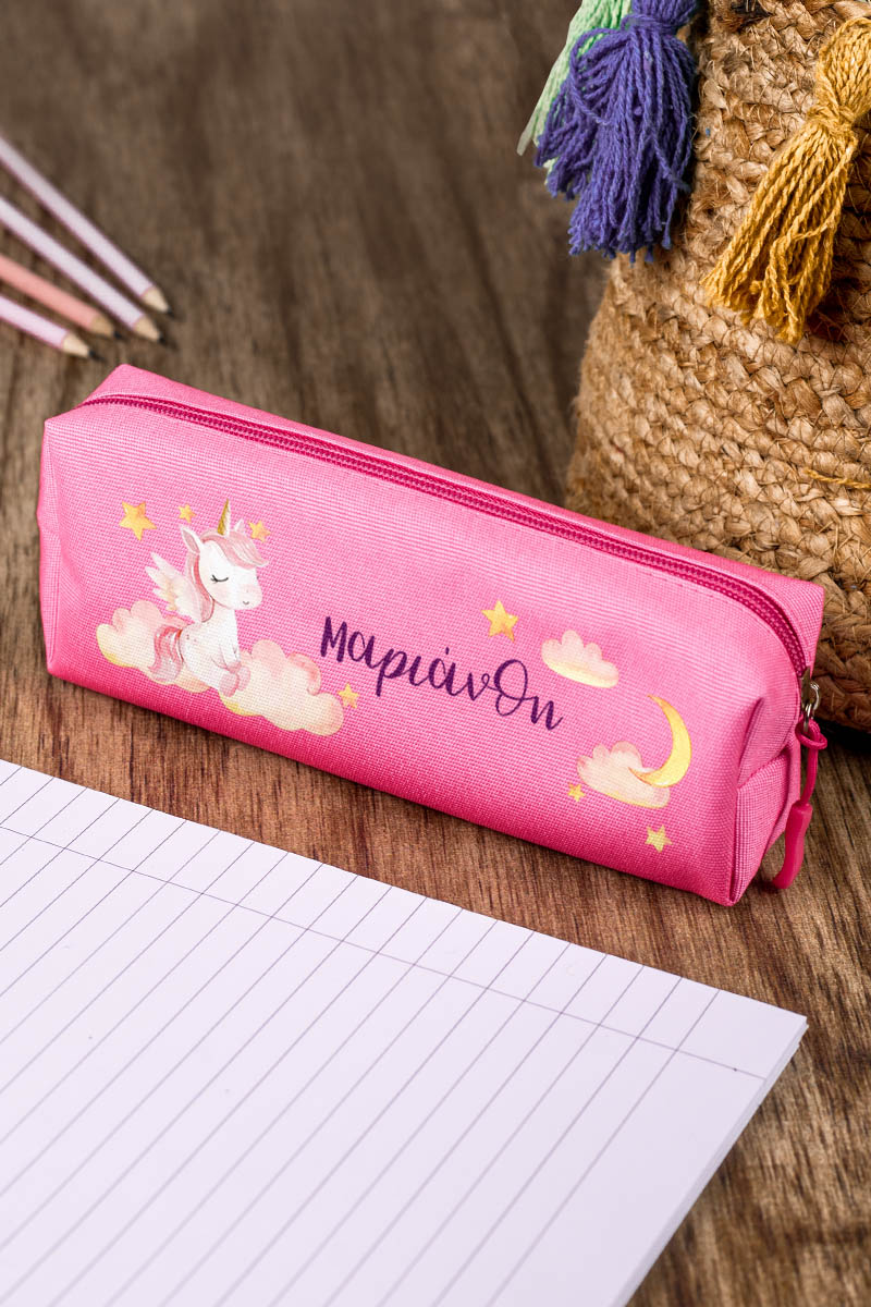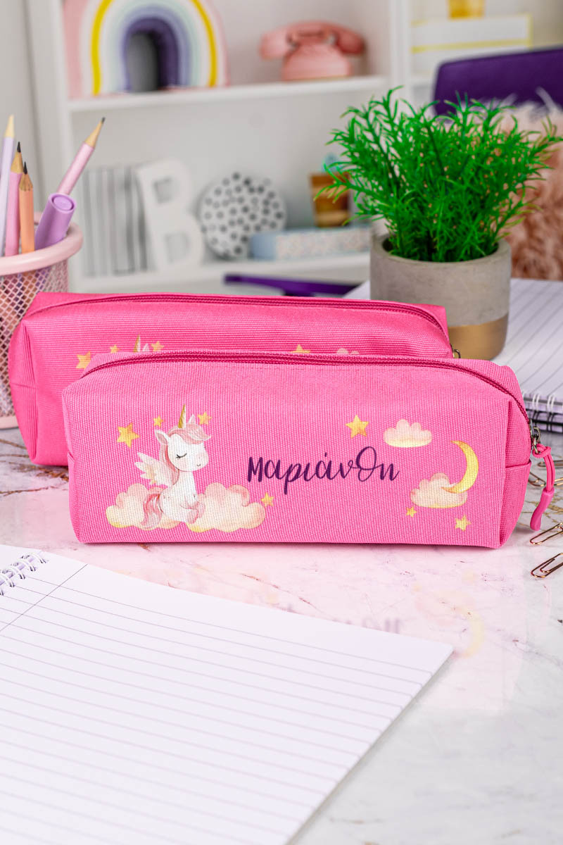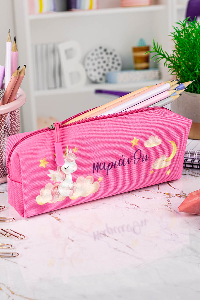 Σχολική Κασετίνα με Όνομα, σε Φούξια Χρώμα & Σχέδιο Μονόκερο