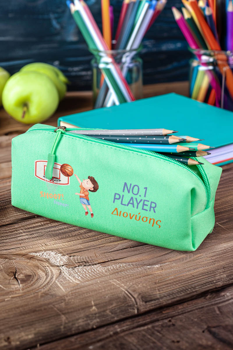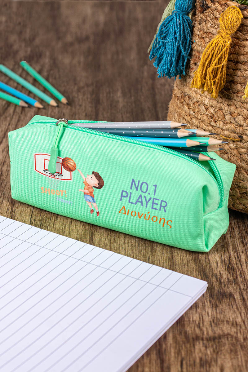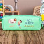 Σχολική Κασετίνα με Όνομα, σε Πετρόλ Χρώμα & Σχέδιο Μπάσκετ