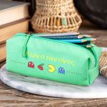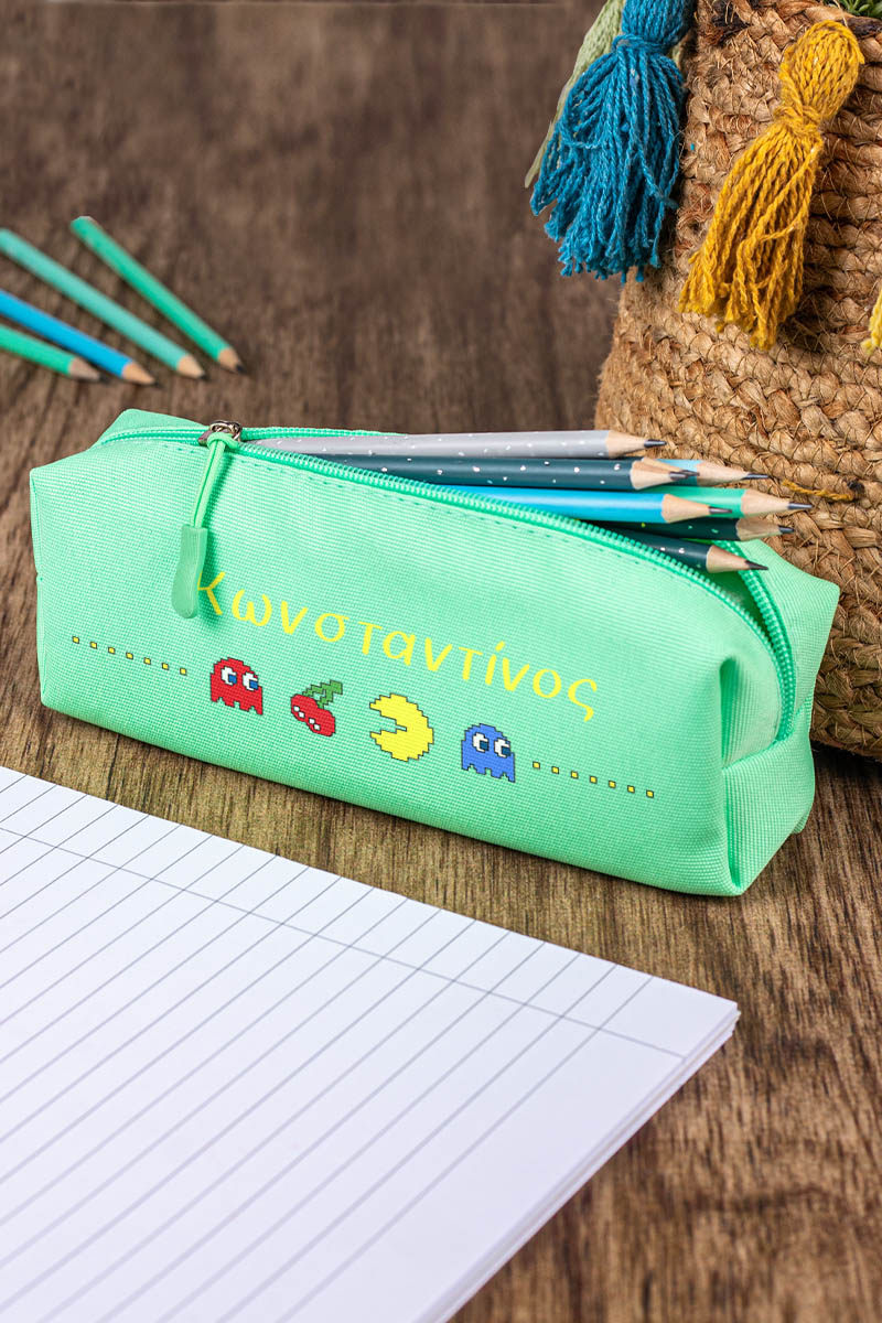 Σχολική Κασετίνα με Όνομα, σε Πετρόλ Χρώμα & Σχέδιο Pacman