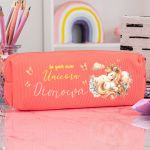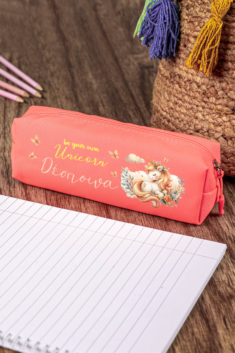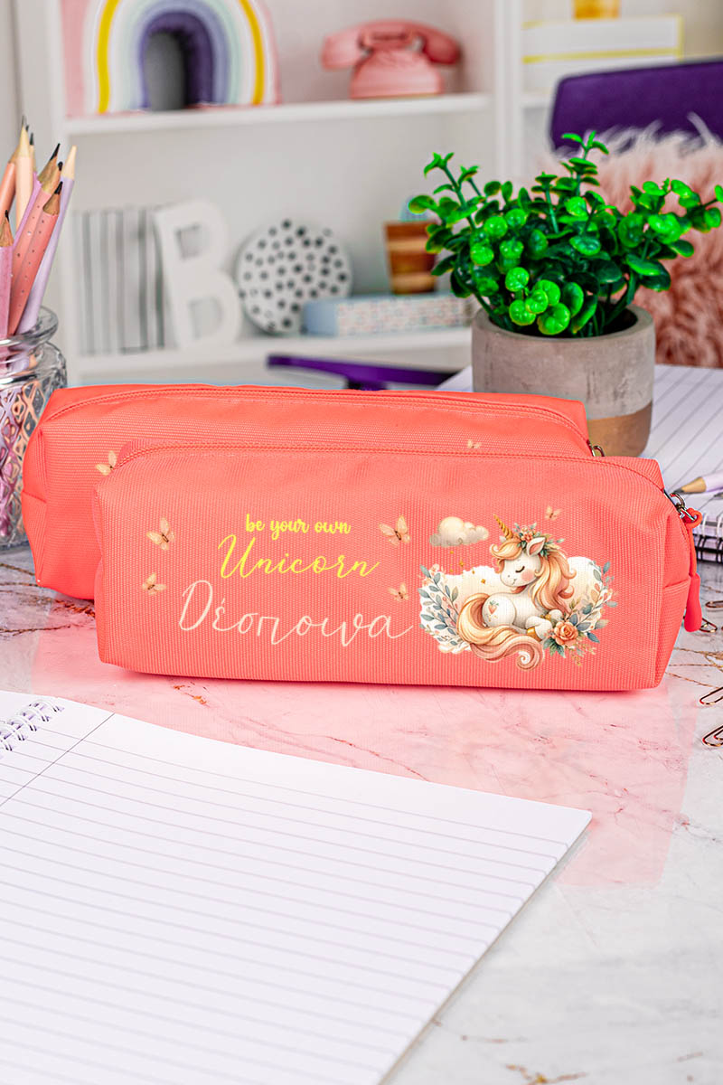 Σχολική Κασετίνα με Όνομα, σε Κοραλί Χρώμα & Σχέδιο Paradise