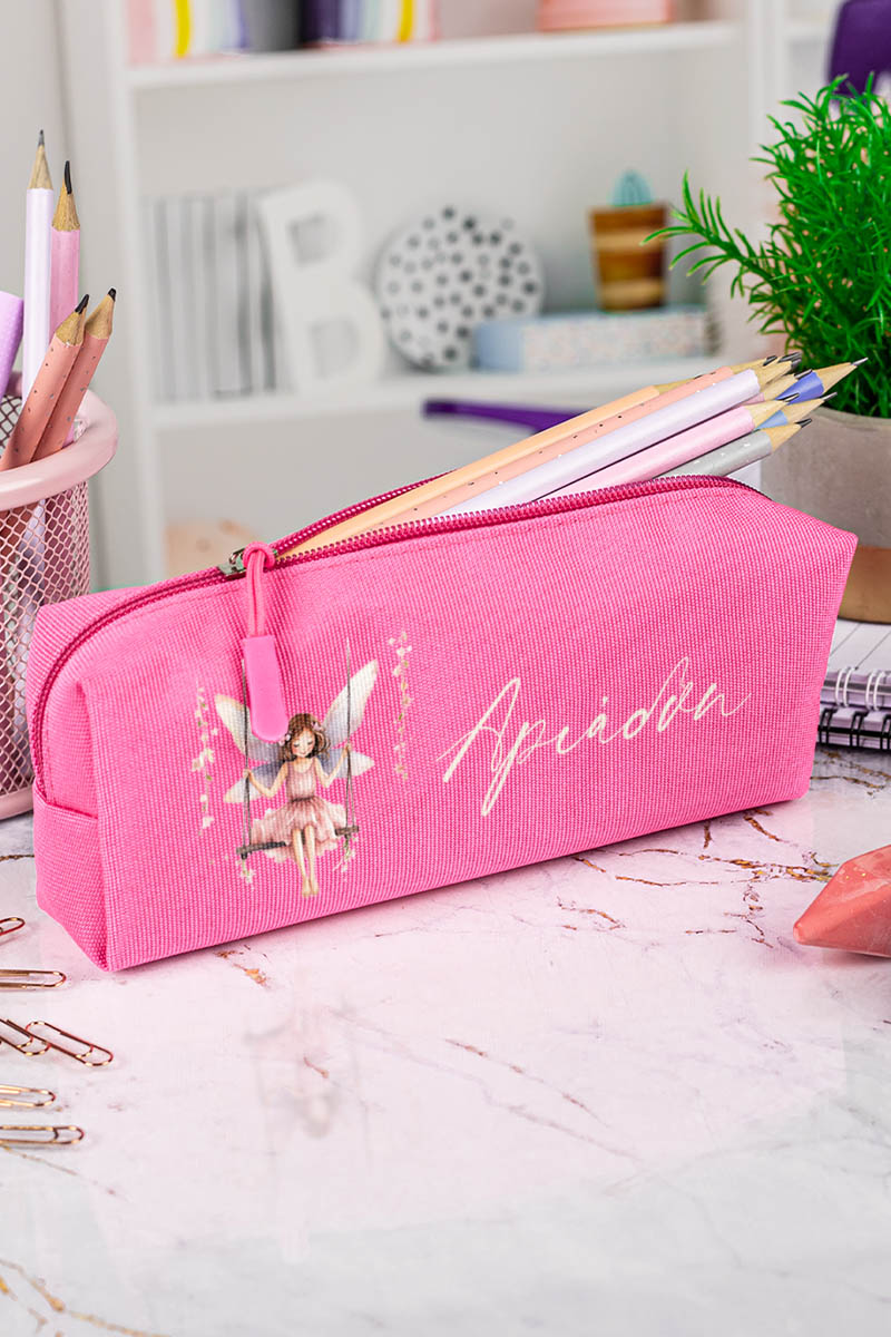Σχολική Κασετίνα με Όνομα, σε Φούξια Χρώμα & Σχέδιο Παραμύθι