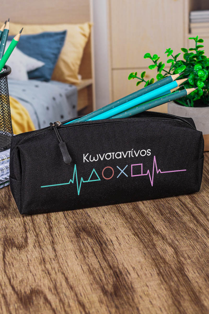 Σχολική Κασετίνα με Όνομα, σε Μαύρο Χρώμα & Σχέδιο Play