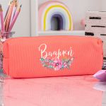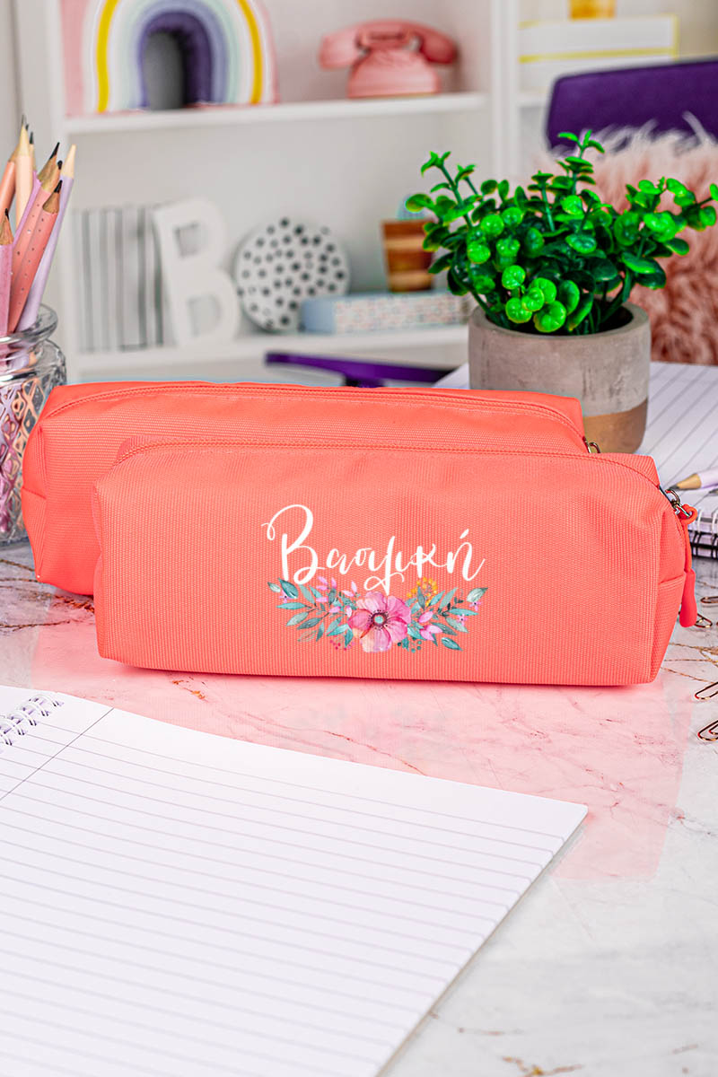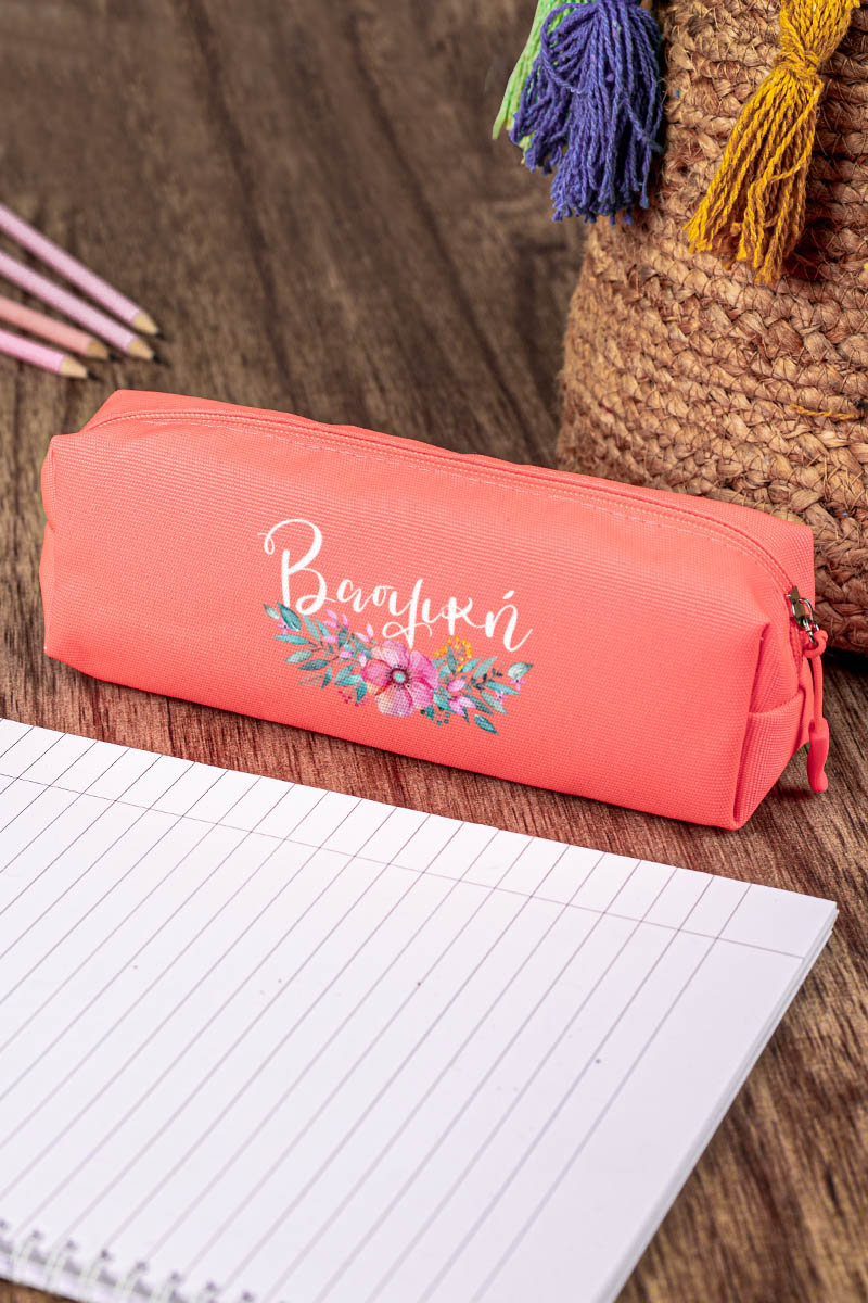 Σχολική Κασετίνα με Όνομα, σε Κοραλί Χρώμα & Σχέδιο Poppy