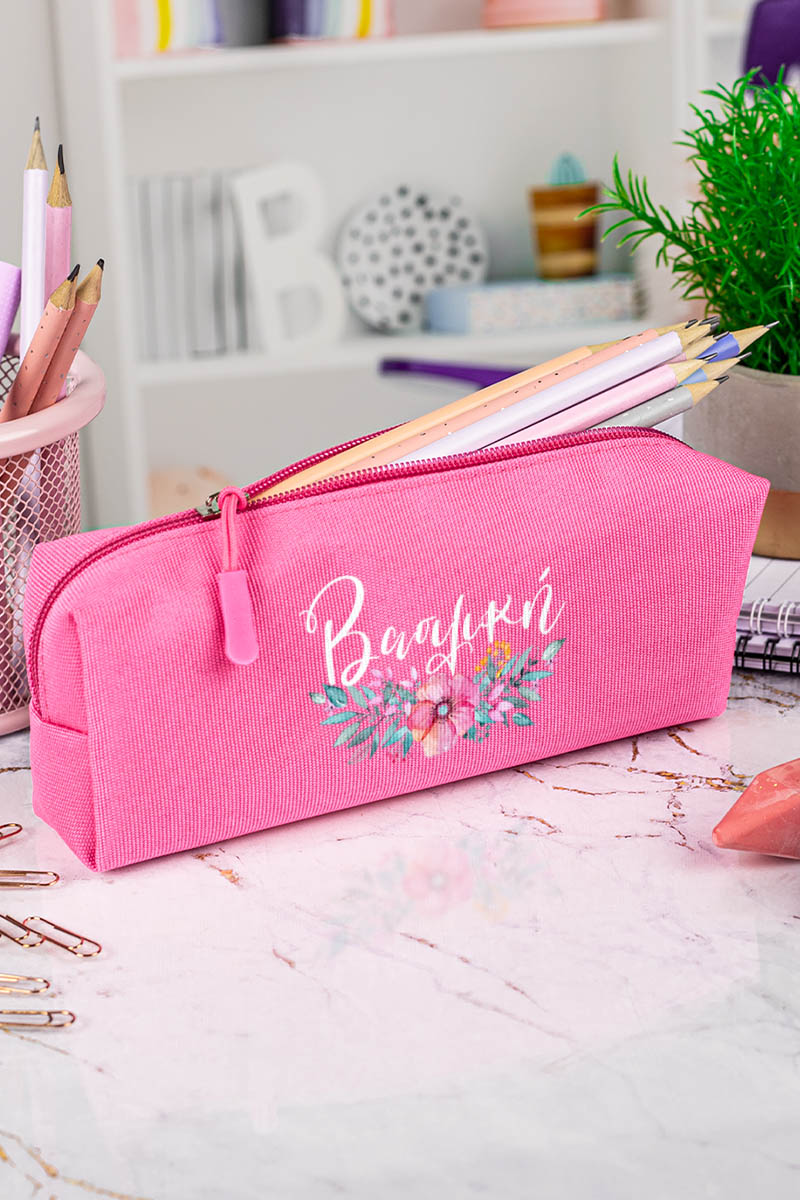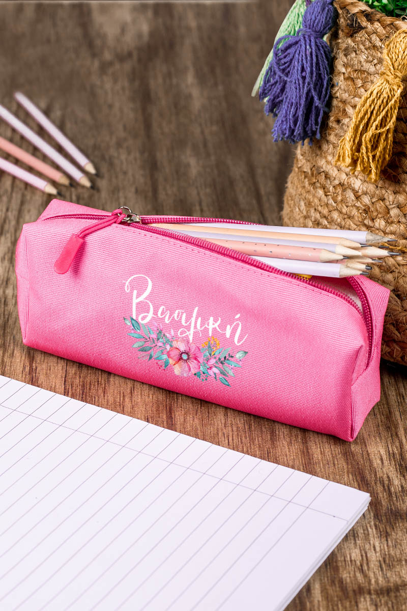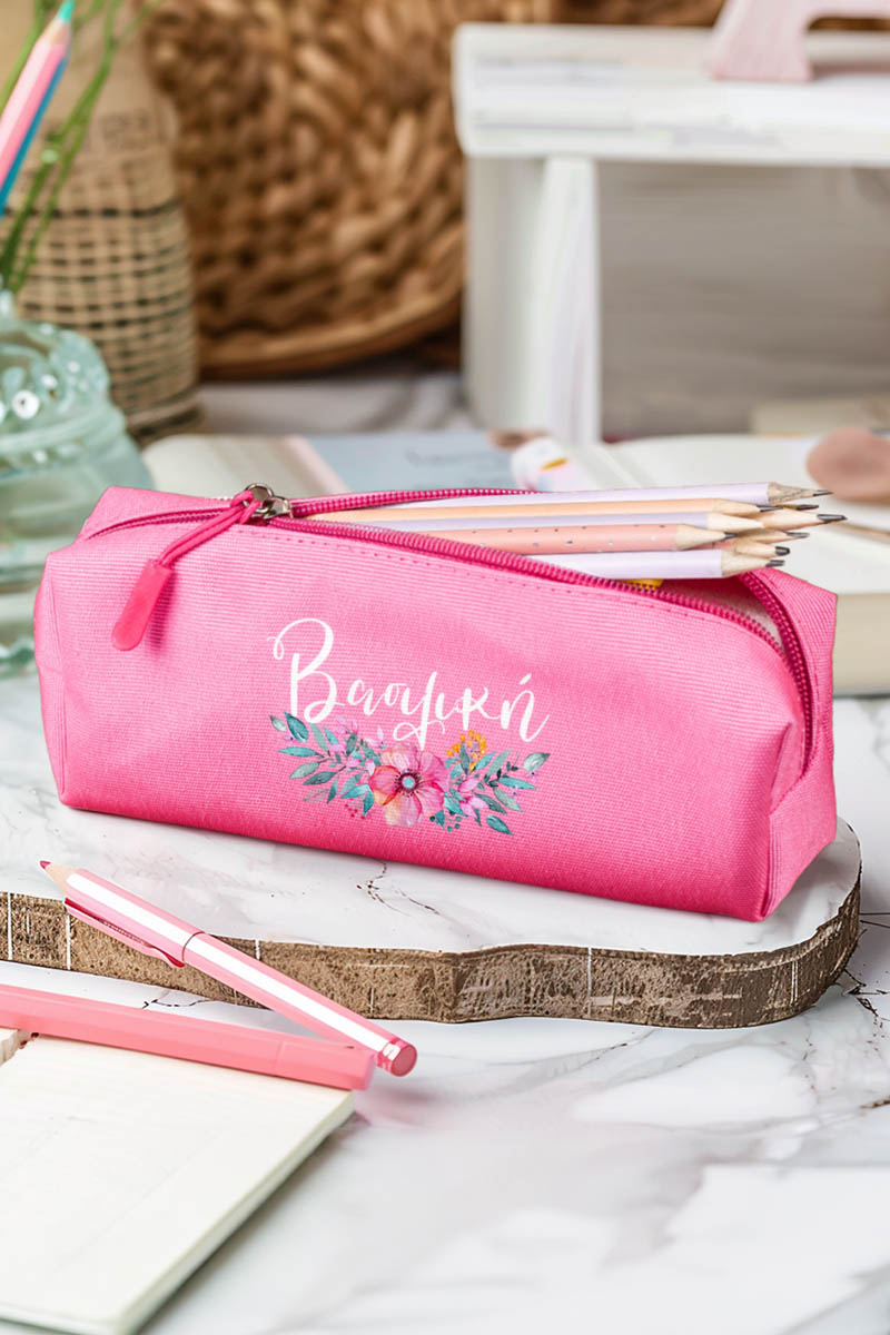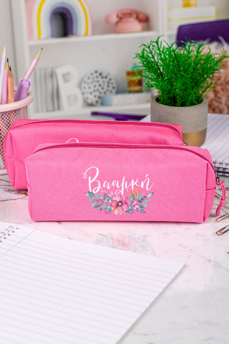 Σχολική Κασετίνα με Όνομα, σε Φούξια Χρώμα & Σχέδιο Poppy