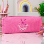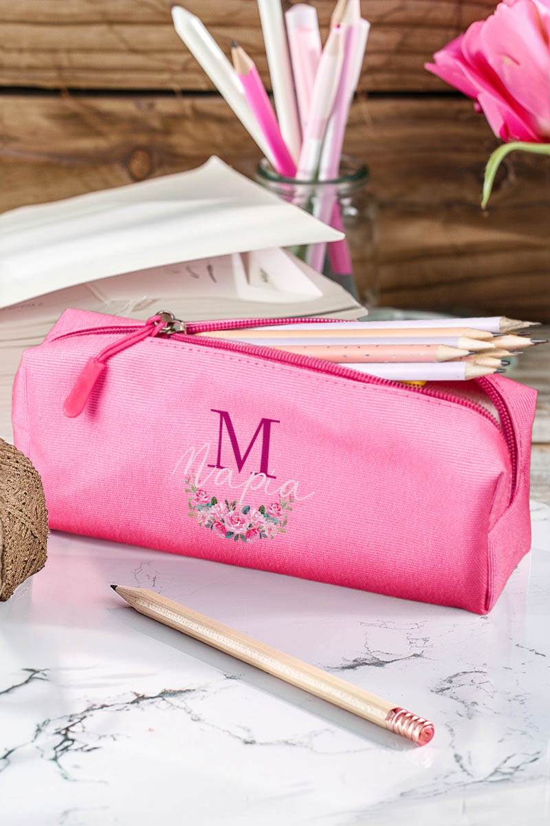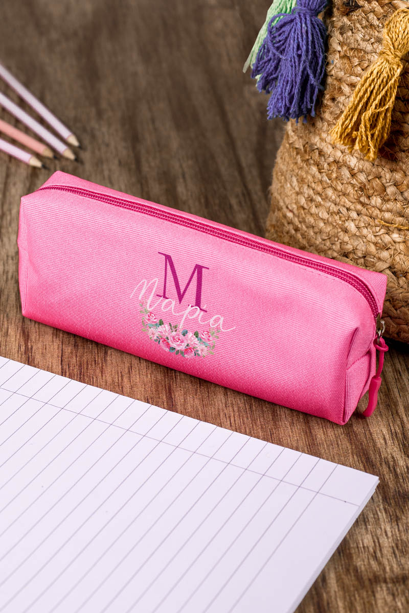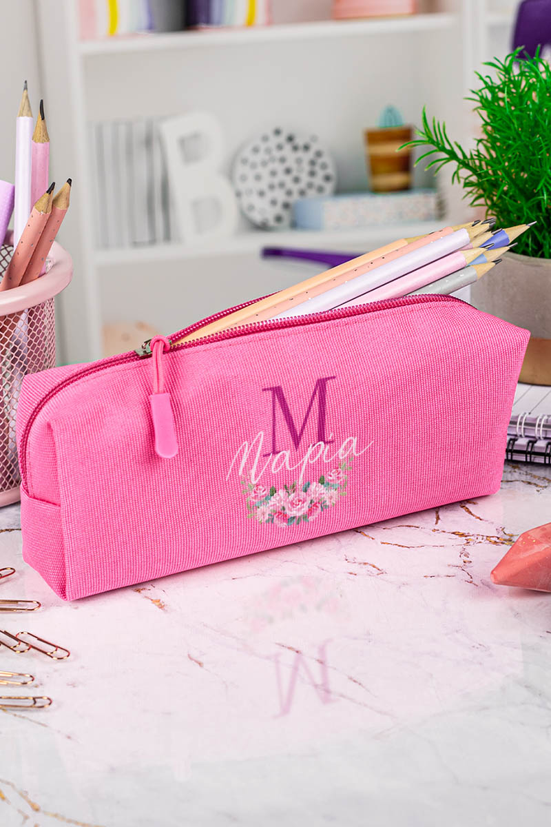Σχολική Κασετίνα με Όνομα, σε Φούξια Χρώμα & Σχέδιο Roses