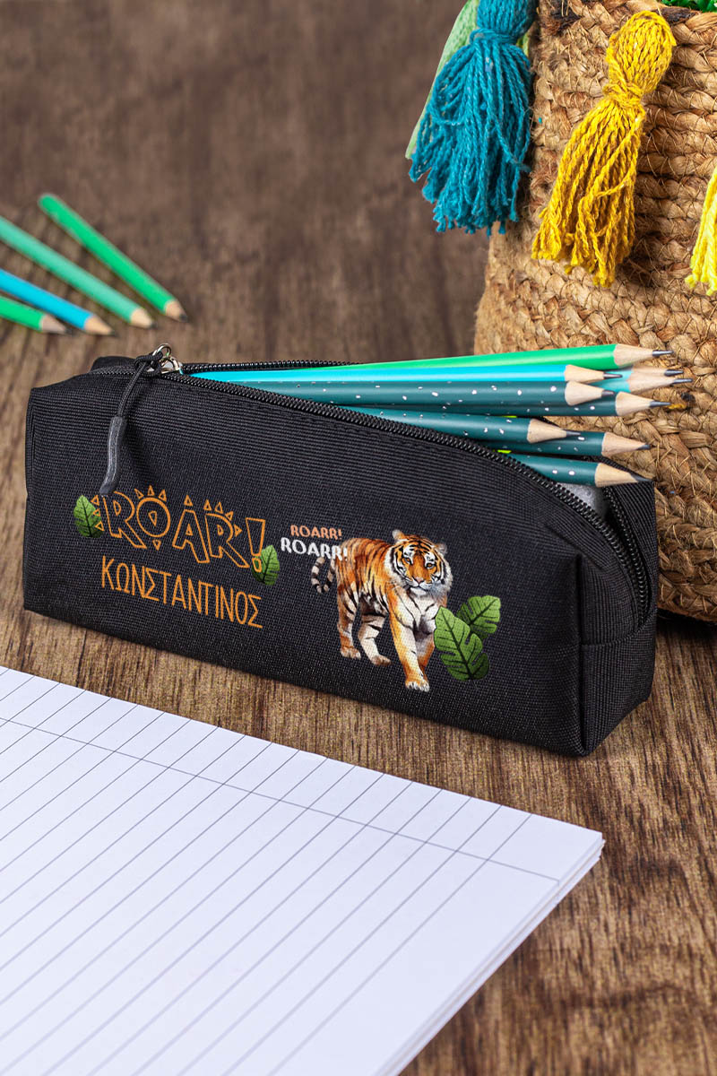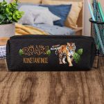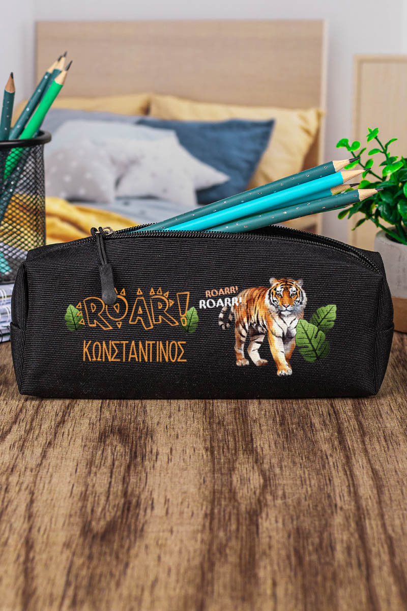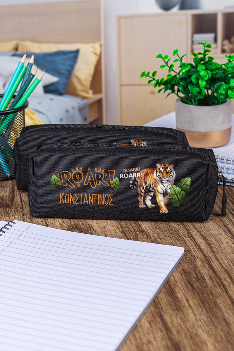 Σχολική Κασετίνα με Όνομα, σε Μαύρο Χρώμα & Σχέδιο Τίγρης