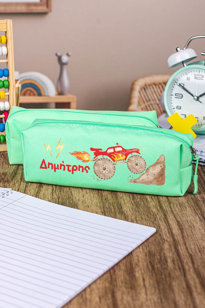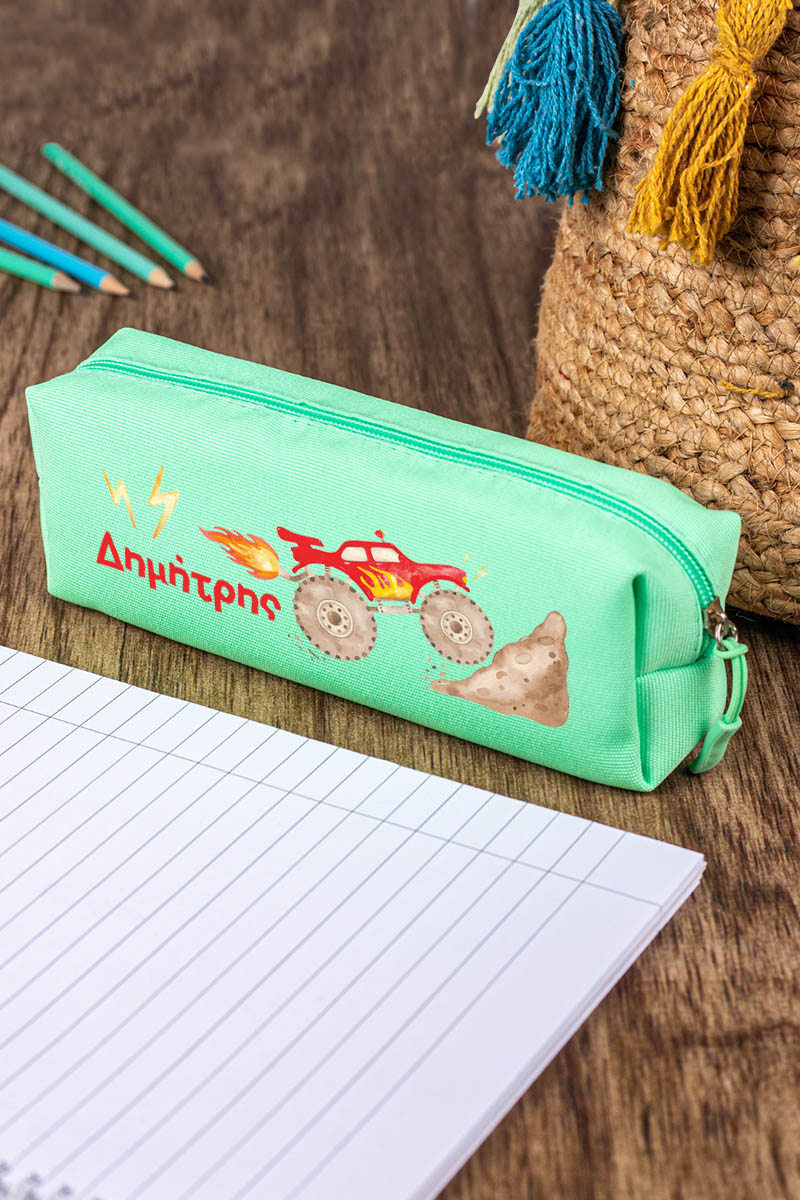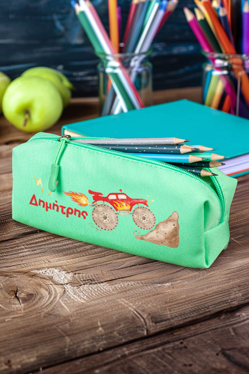 Σχολική Κασετίνα με Όνομα, σε Πετρόλ Χρώμα & Σχέδιο Truck