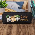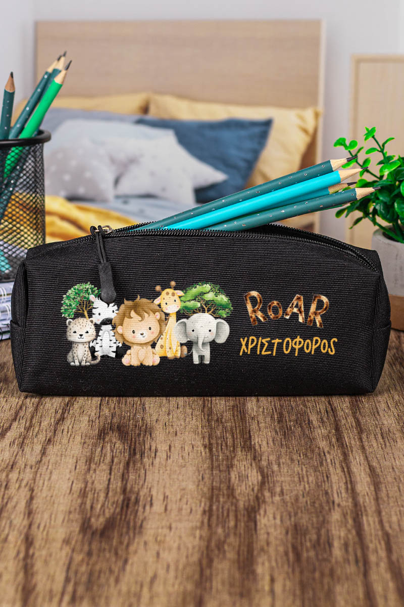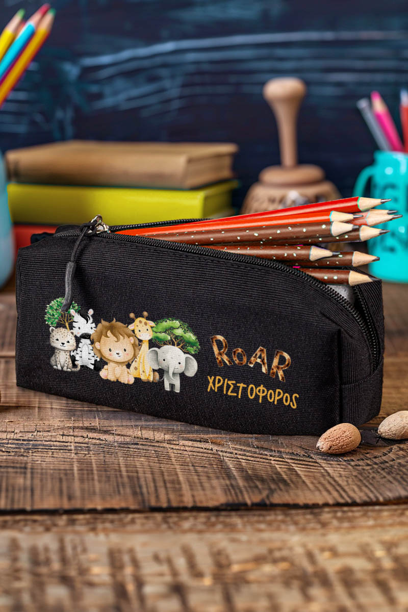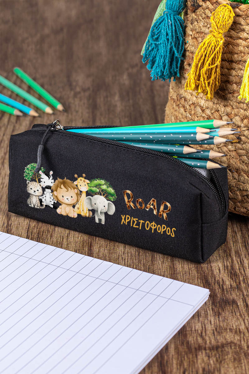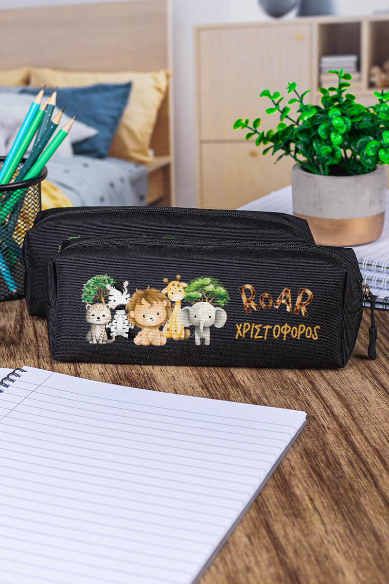 Σχολική Κασετίνα με Όνομα, σε Μαύρο Χρώμα & Σχέδιο Ζούγκλα