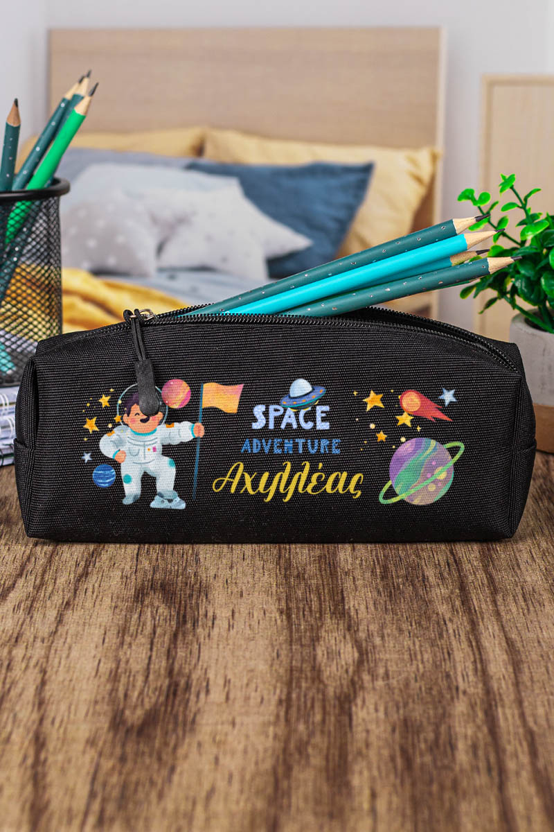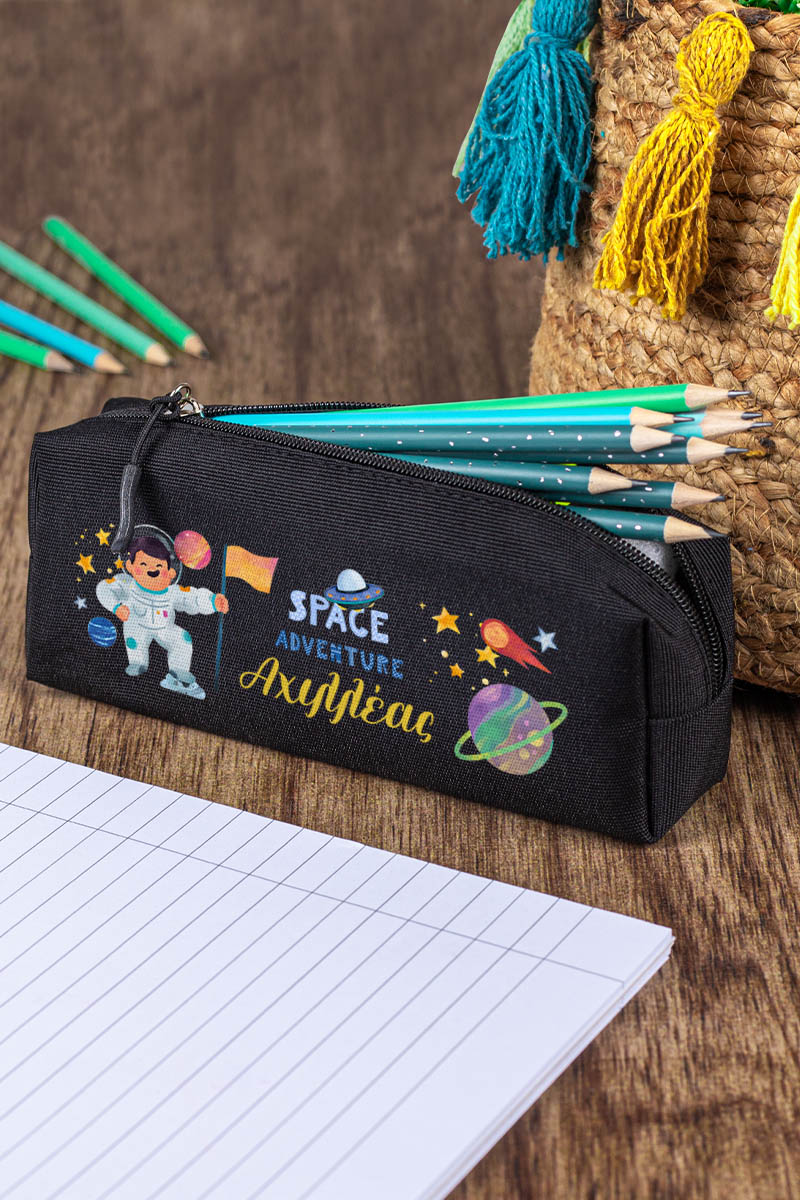Σχολική Κασετίνα με Όνομα, σε Μαύρο Χρώμα & Σχέδιο Space