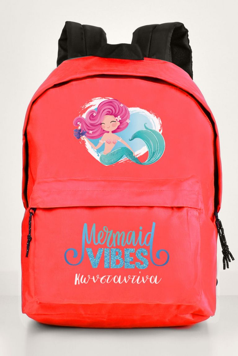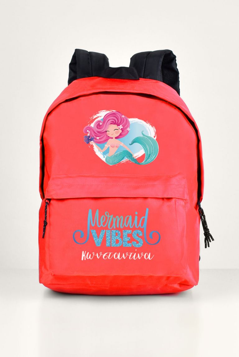 Σχολική Τσάντα Δημοτικού-Γυμνασίου-Λυκείου, Κόκκινο Χρώμα, Mermaid