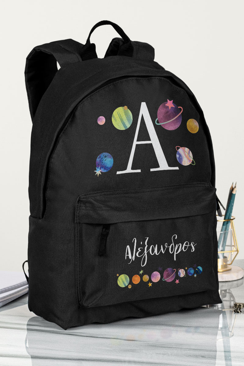 Σχολική Τσάντα Δημοτικού, Μαύρο Χρώμα, Name Space