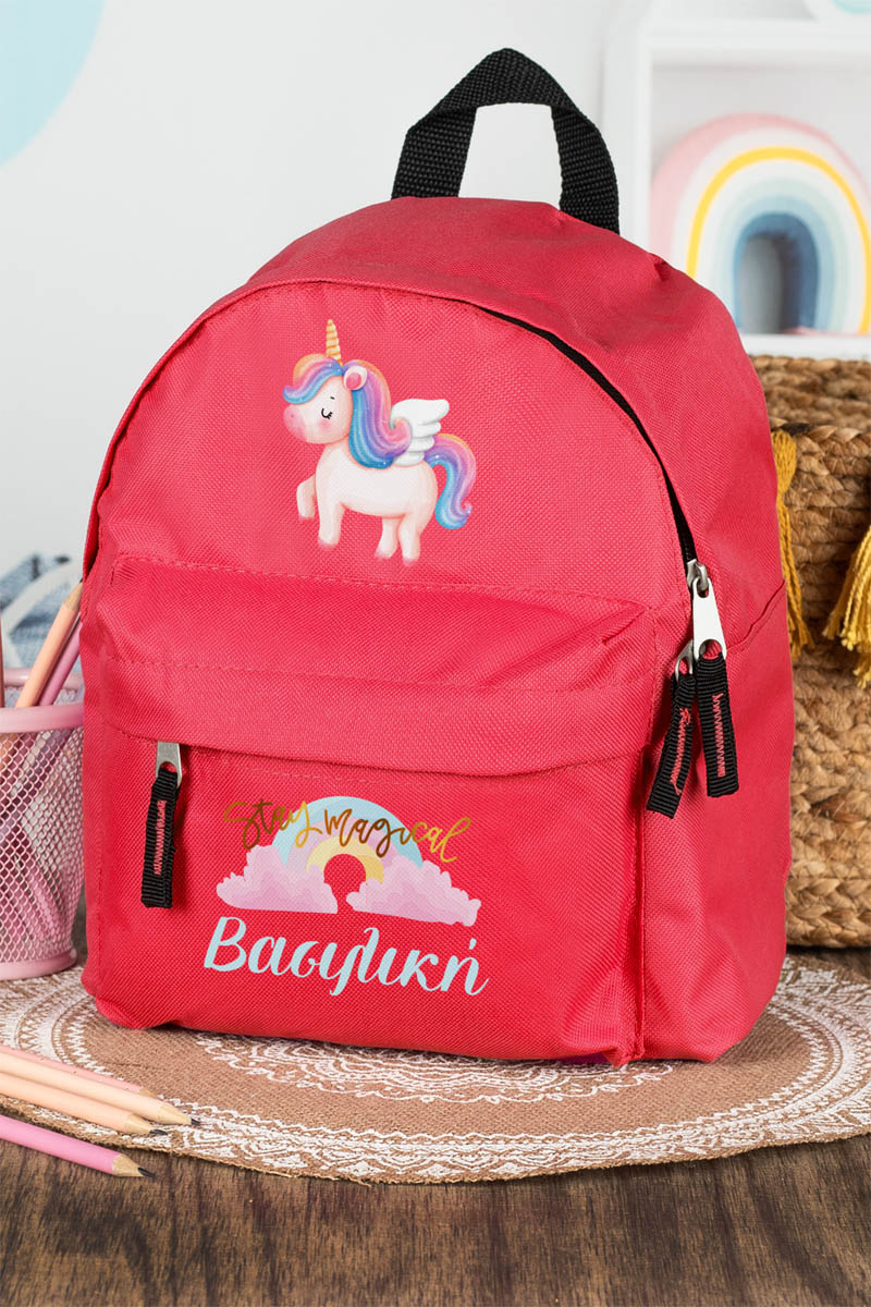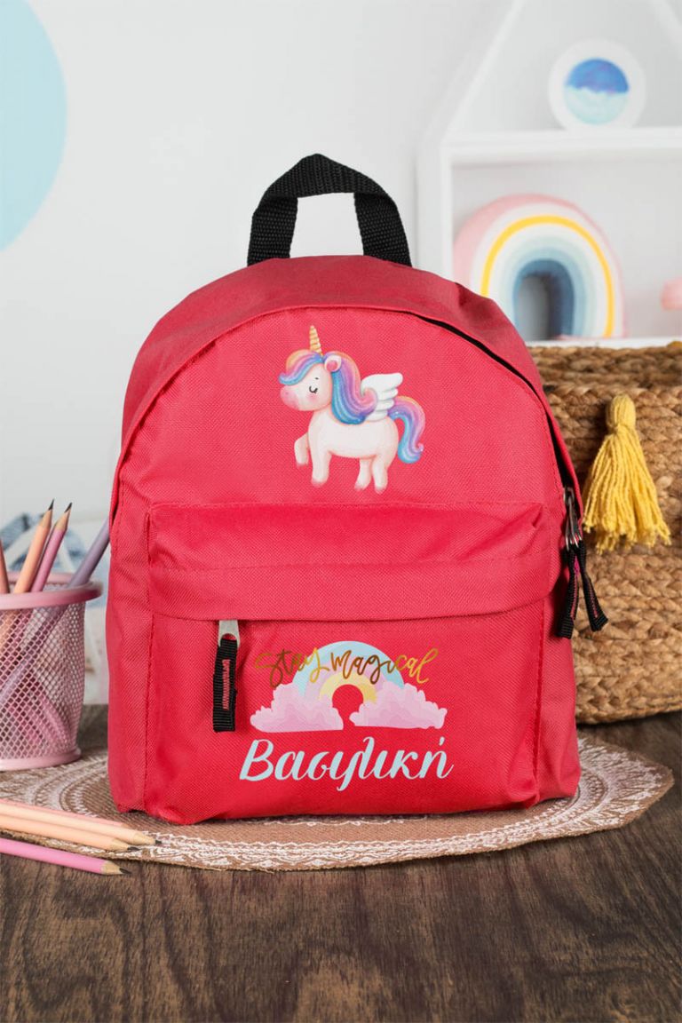 Σχολική Τσάντα Πλάτης Νηπιαγωγείου σε Κόκκινο Χρώμα, Unicorn