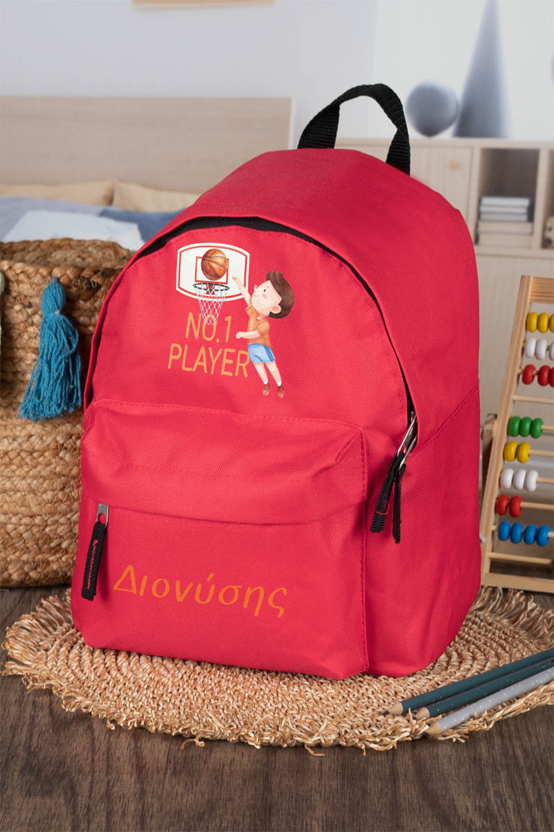 Σχολική Τσάντα Πλάτης Νηπιαγωγείου σε Κόκκινο Χρώμα, Basketball
