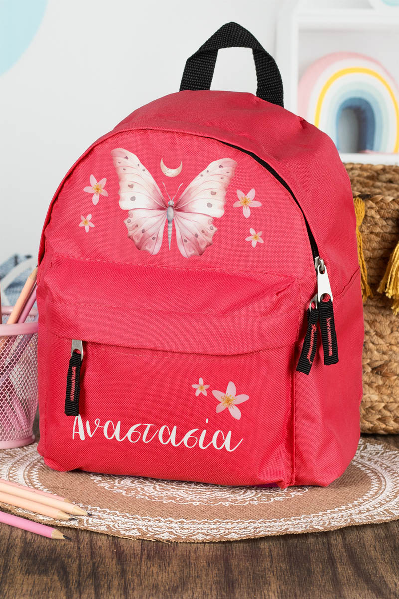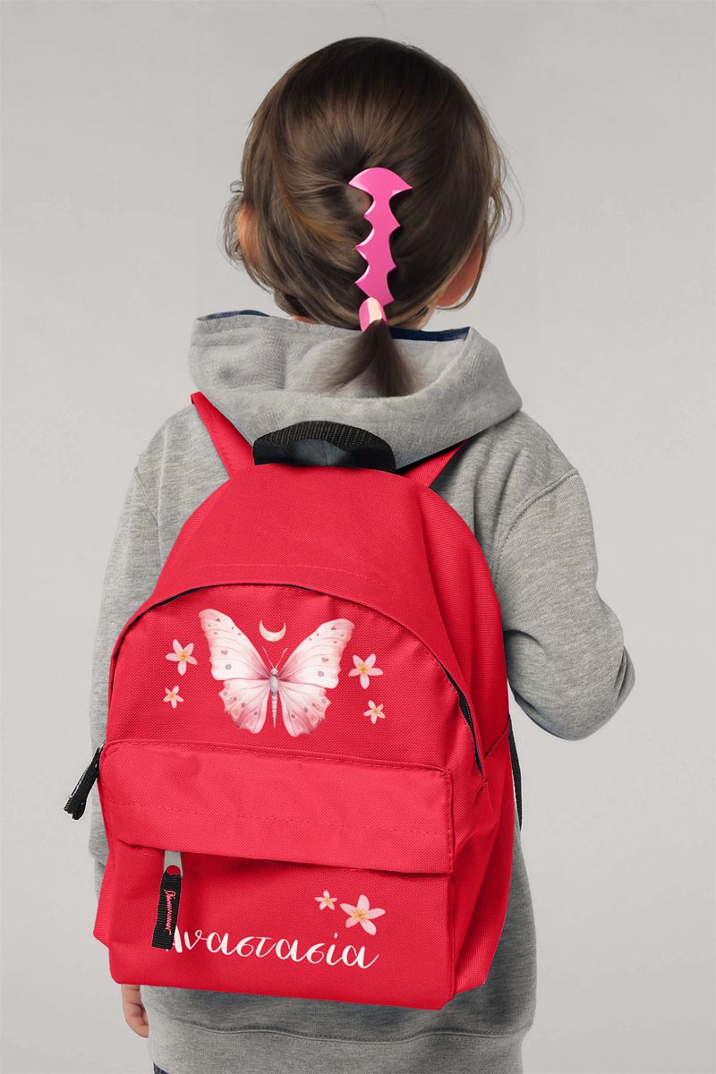 Σχολική Τσάντα Πλάτης Νηπιαγωγείου σε Κόκκινο Χρώμα, Butterfly