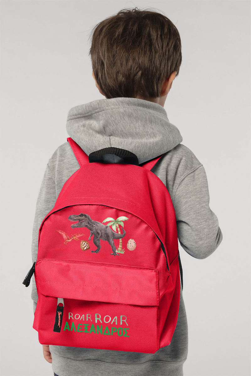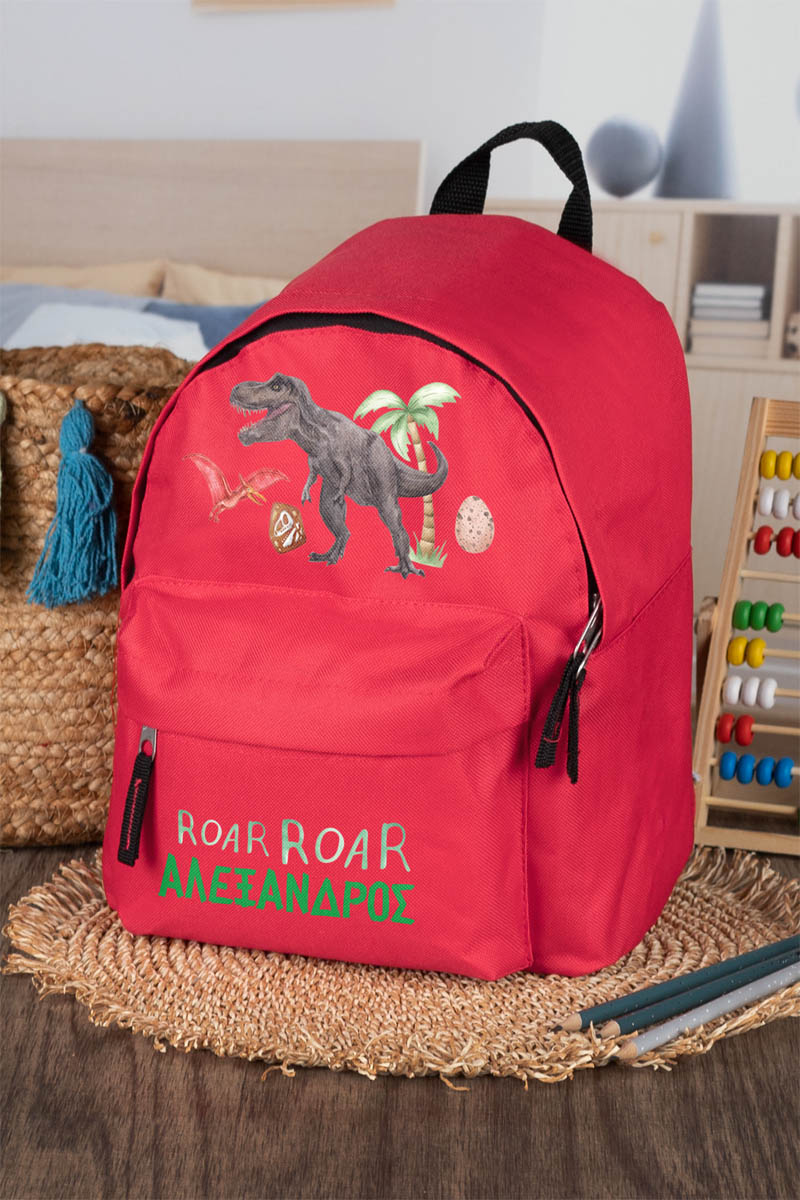 Σχολική Τσάντα Πλάτης Νηπιαγωγείου σε Κόκκινο Χρώμα, Dino