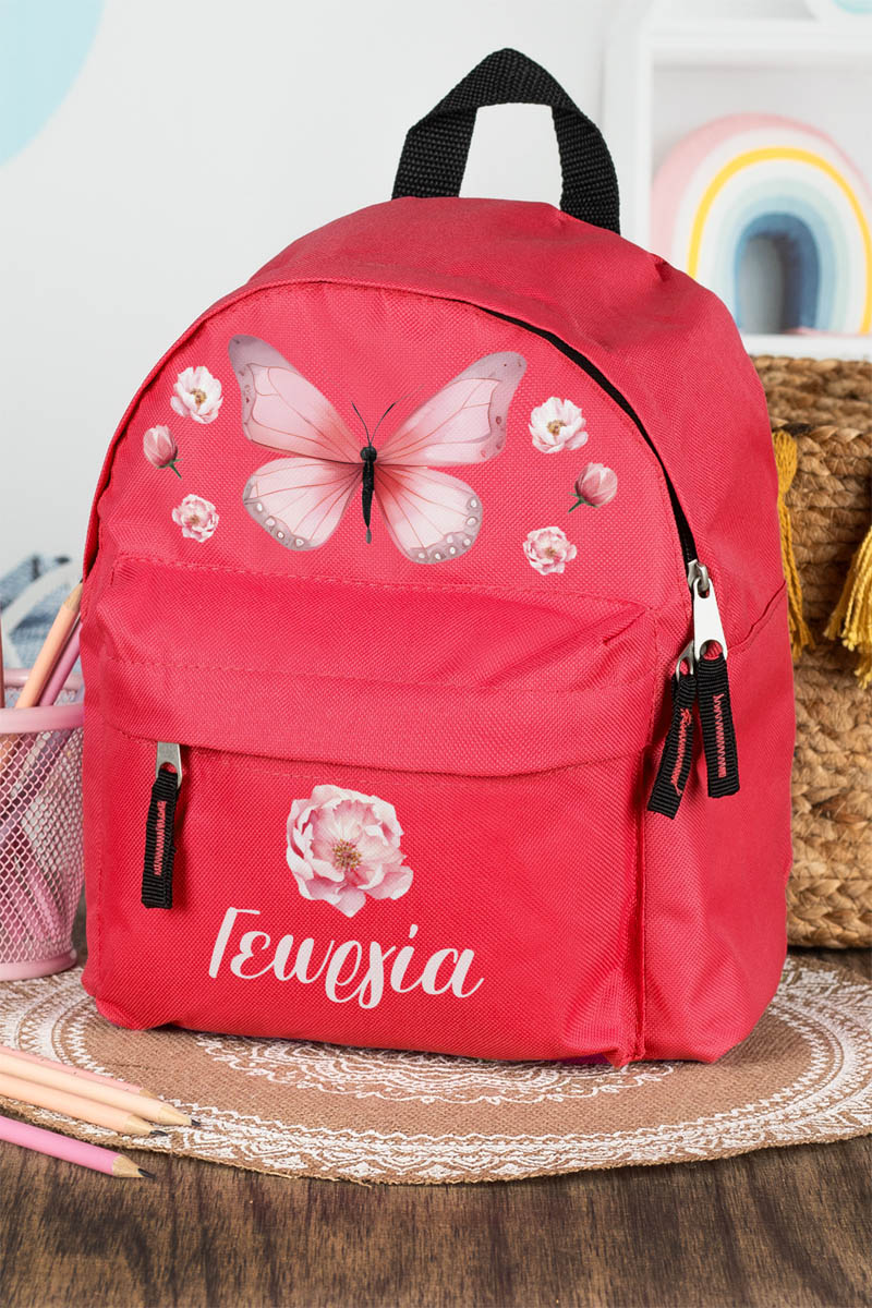 Σχολική Τσάντα Πλάτης Νηπιαγωγείου σε Κόκκινο Χρώμα, Flowers