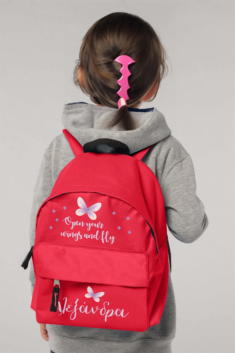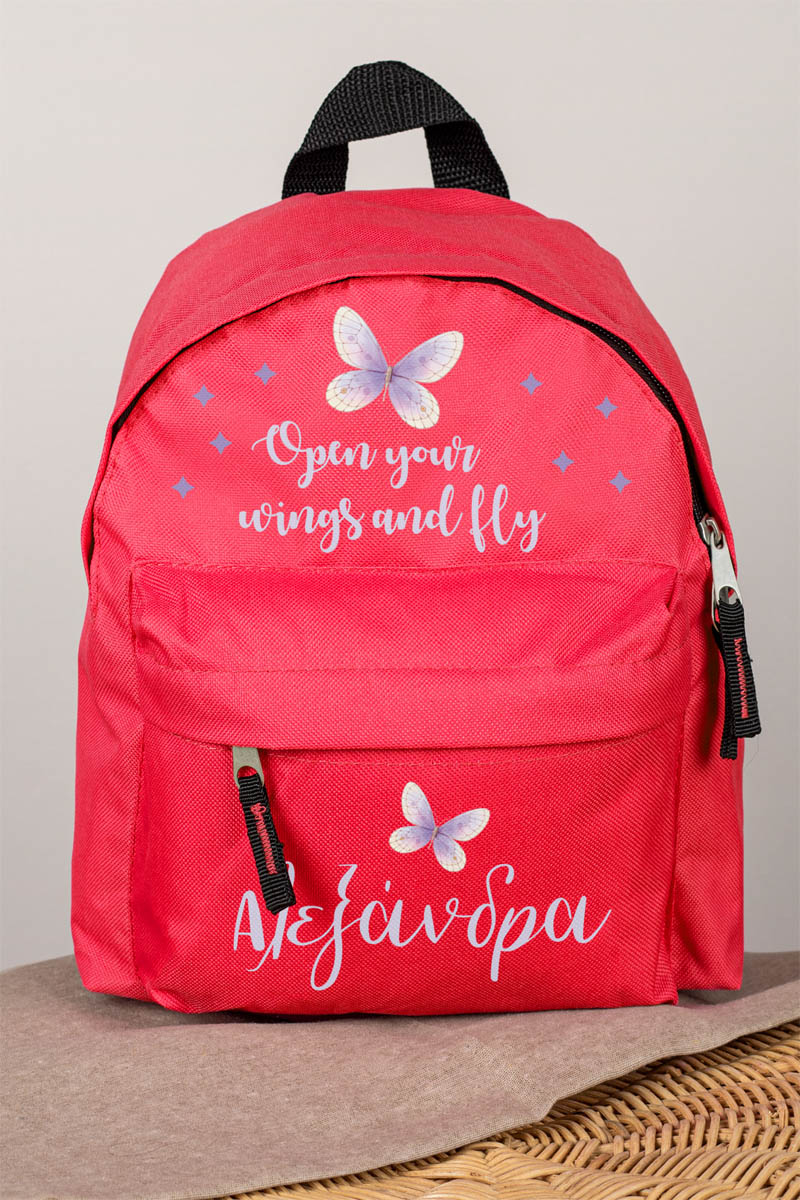 Σχολική Τσάντα Πλάτης Νηπιαγωγείου σε Κόκκινο Χρώμα, Φτερά