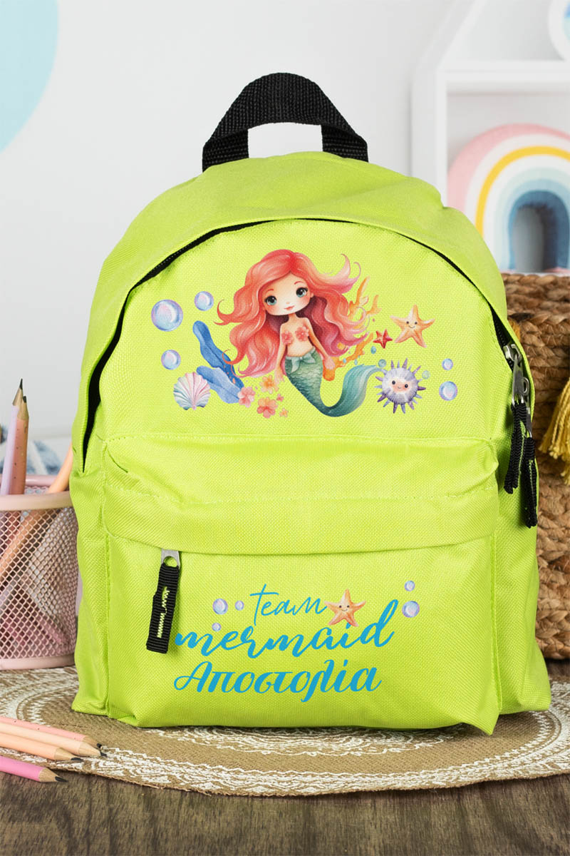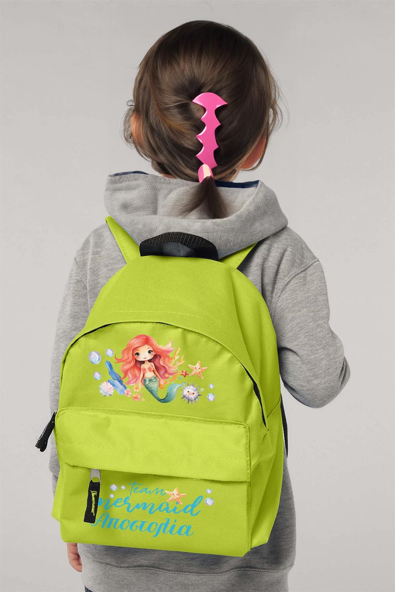 Σχολική Τσάντα Πλάτης Νηπιαγωγείου σε Λαχανί Χρώμα, Γοργόνα