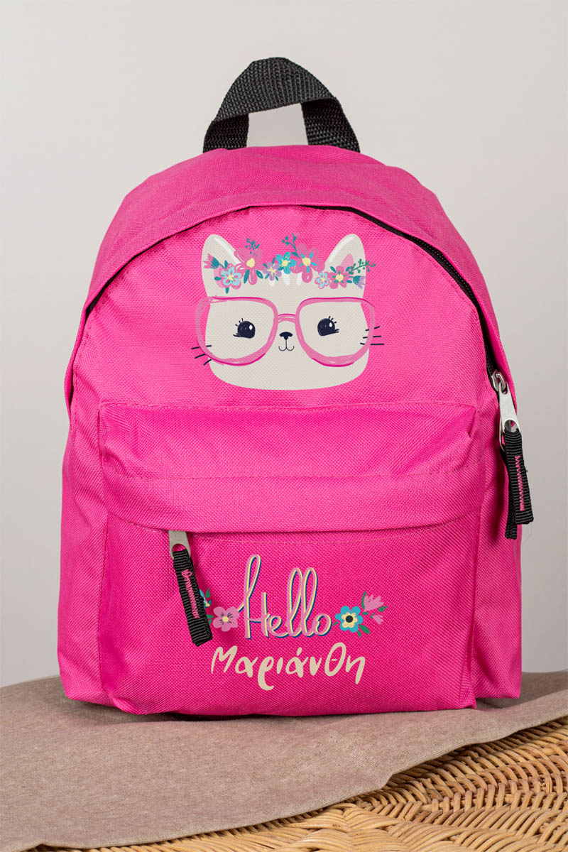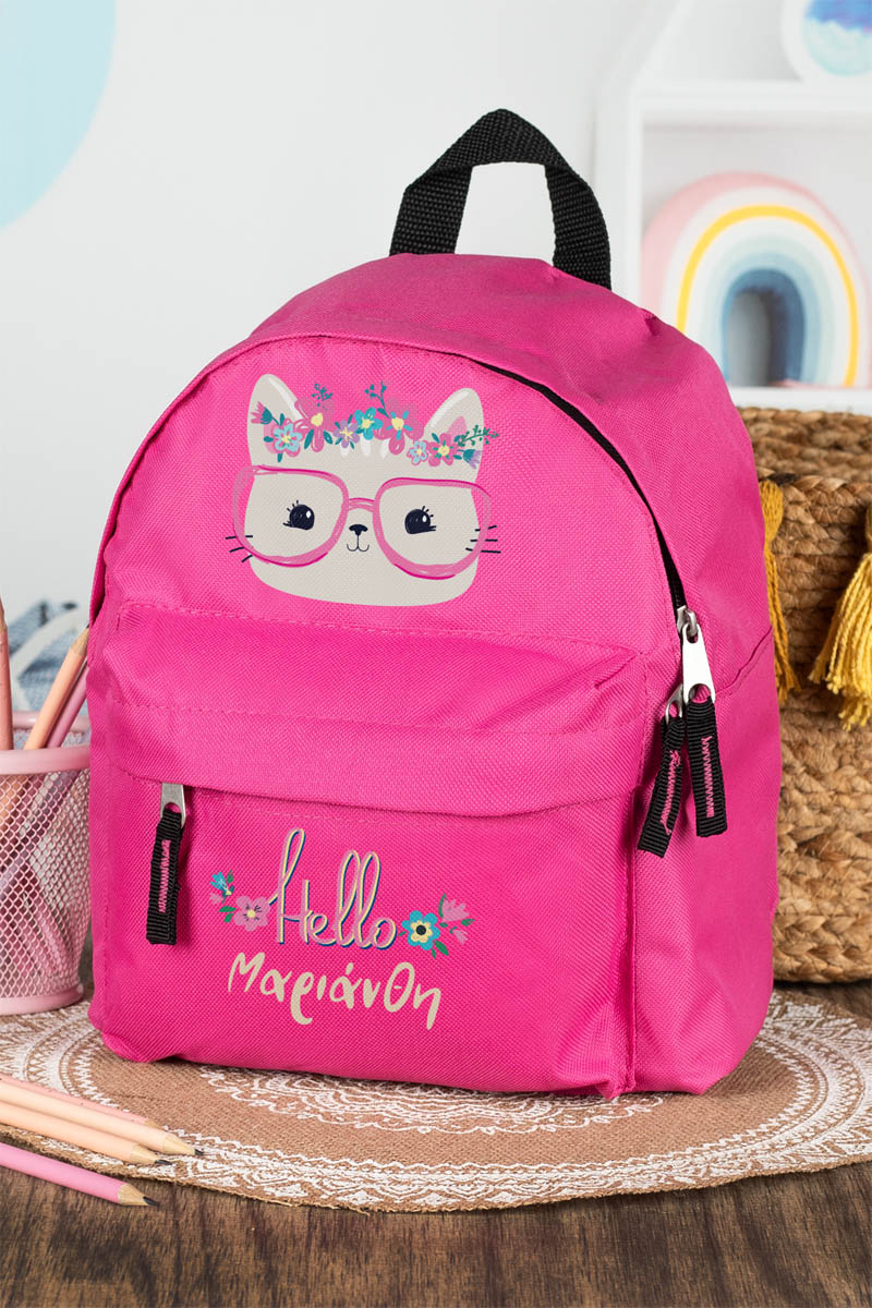 Σχολική Τσάντα Πλάτης Νηπιαγωγείου σε Φούξια Χρώμα, Hello