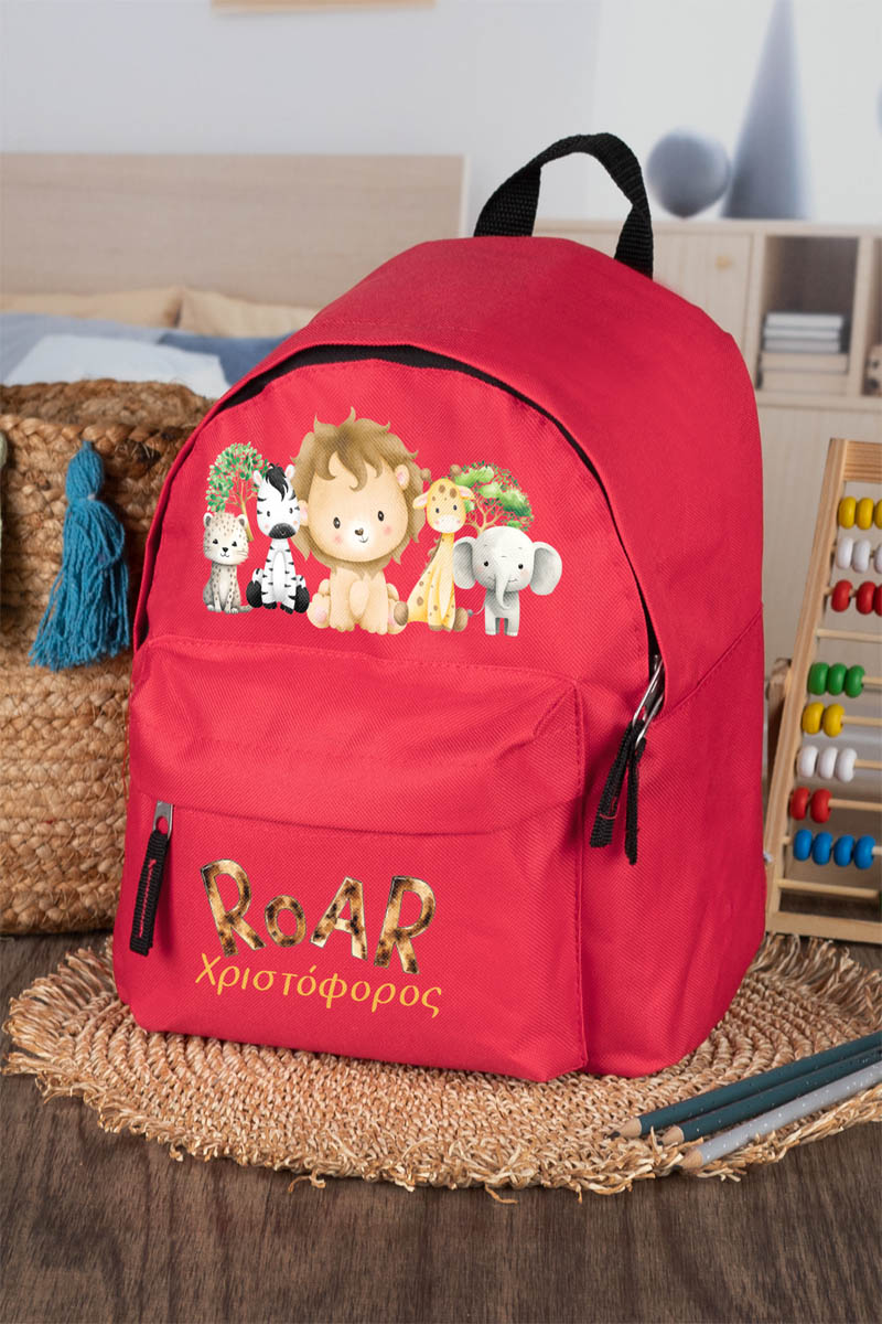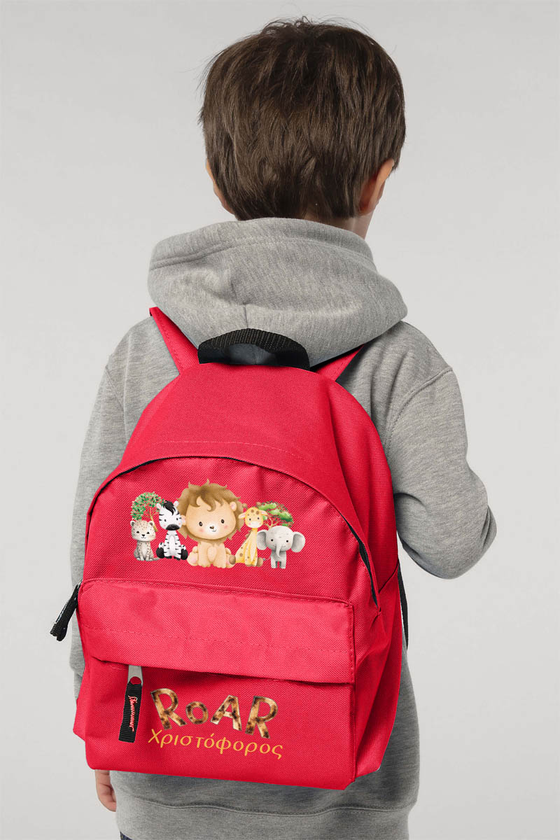Σχολική Τσάντα Πλάτης Νηπιαγωγείου σε Κόκκινο Χρώμα, Jungle