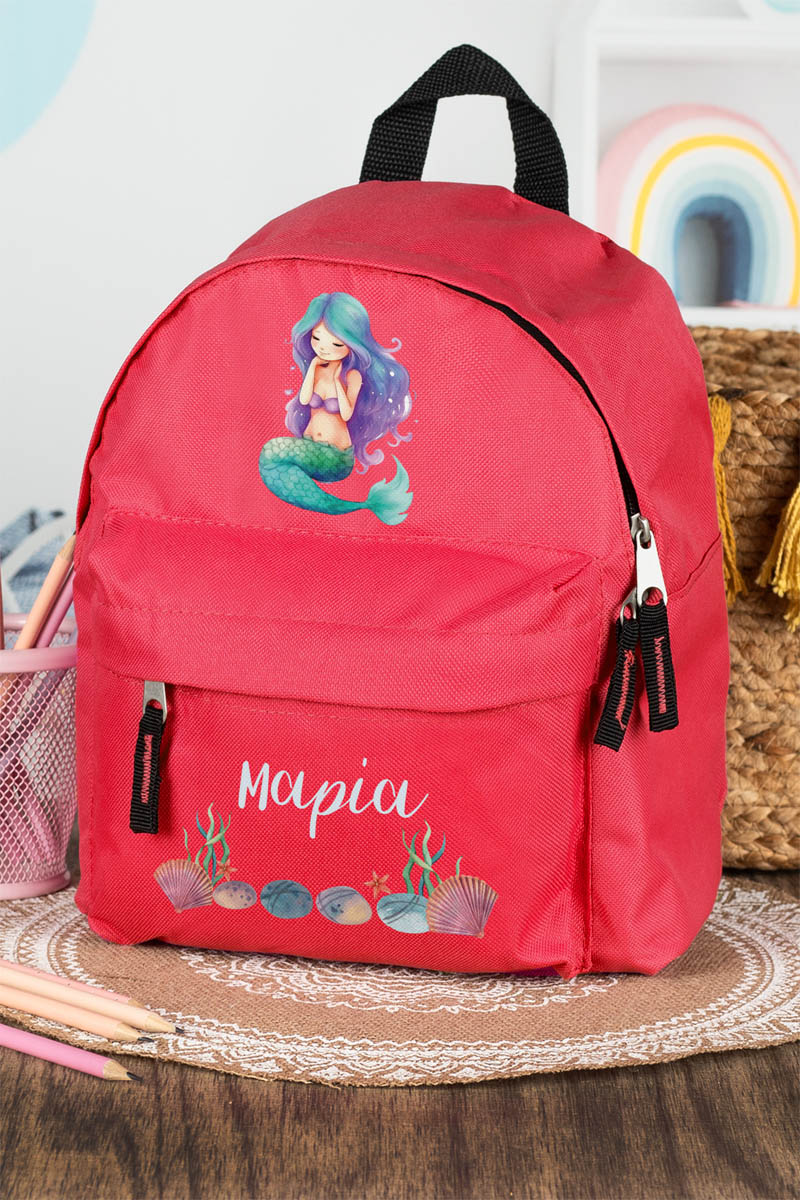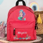 Σχολική Τσάντα Πλάτης Νηπιαγωγείου σε Κόκκινο Χρώμα, Mermaid