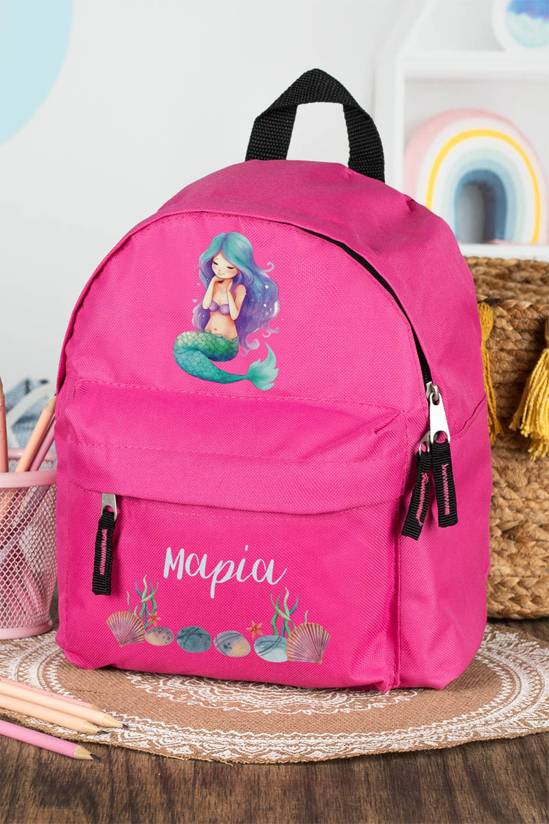 Σχολική Τσάντα Πλάτης Νηπιαγωγείου σε Φούξια Χρώμα, Mermaid