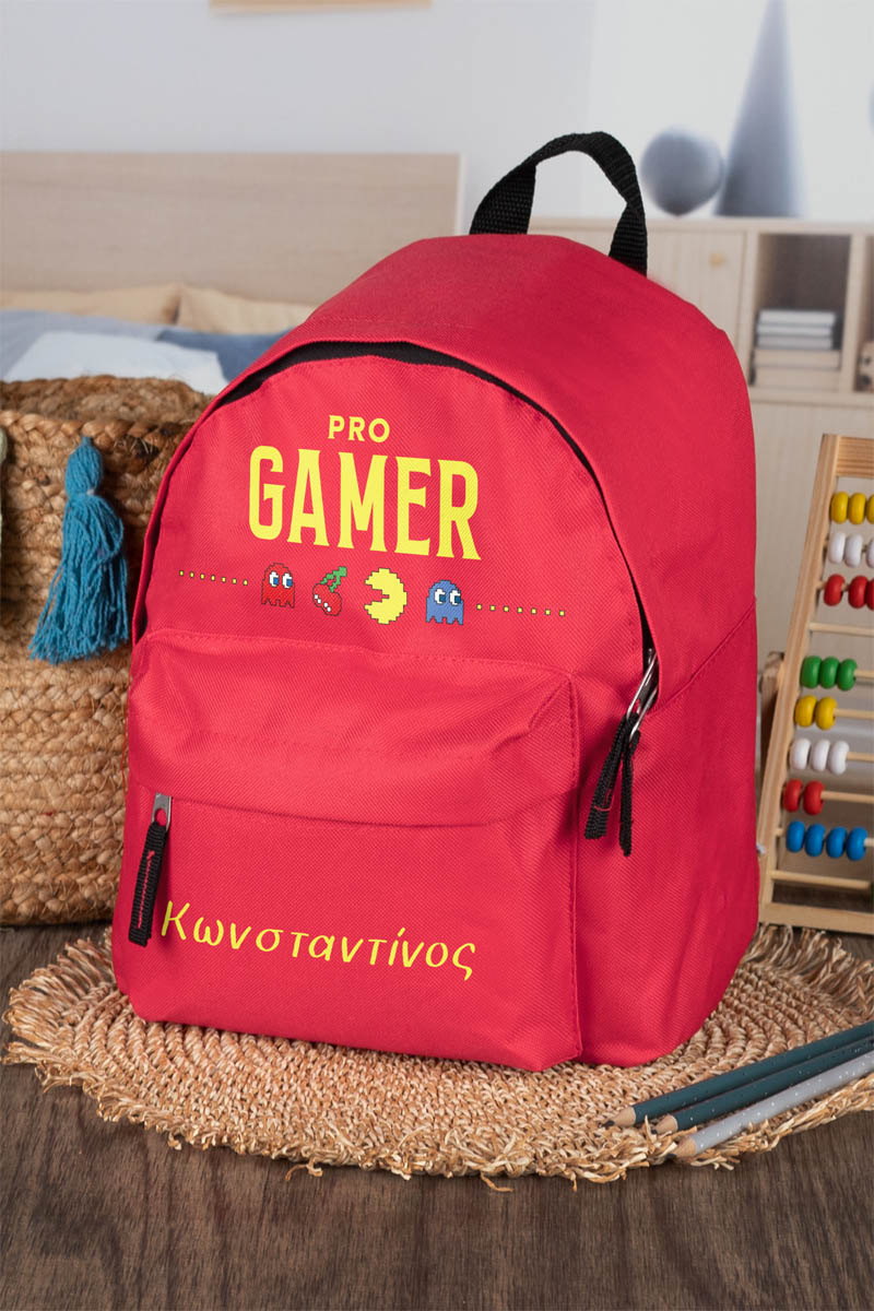 Σχολική Τσάντα Πλάτης Νηπιαγωγείου σε Κόκκινο Χρώμα, Πακμαν