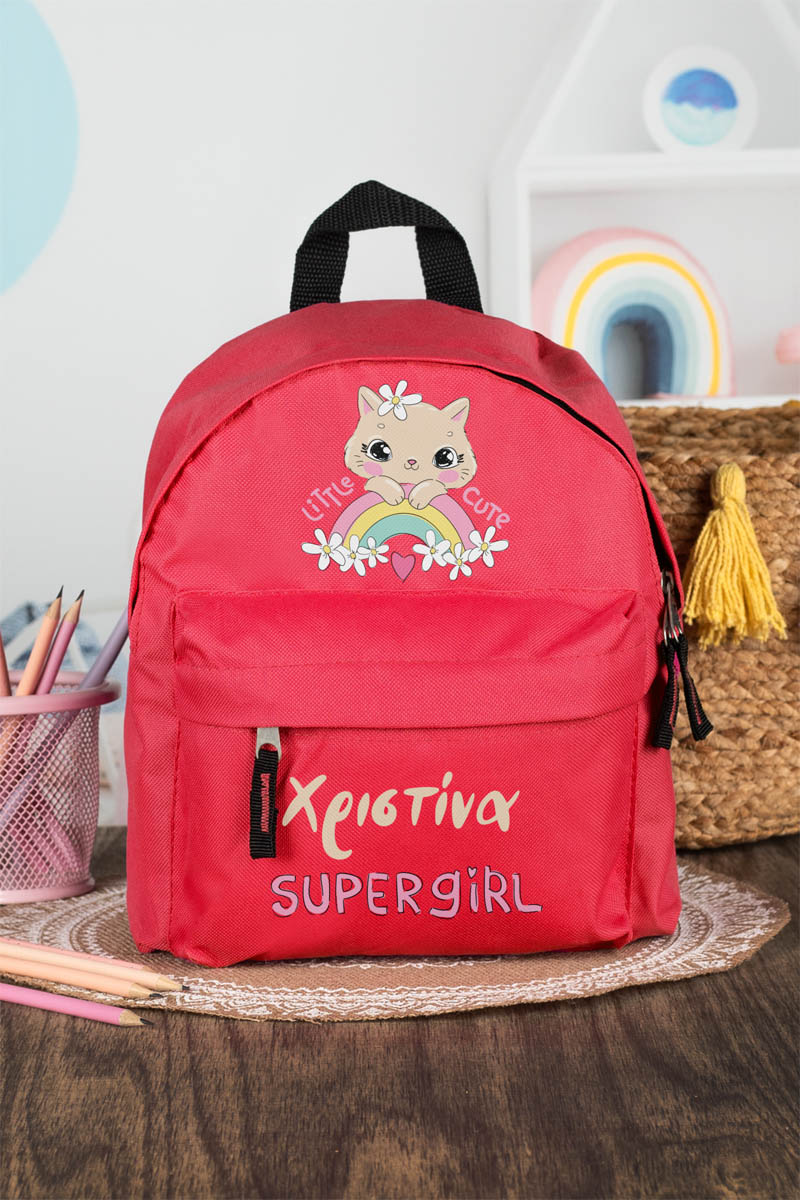 Σχολική Τσάντα Πλάτης Νηπιαγωγείου σε Κόκκινο Χρώμα, Supergirl