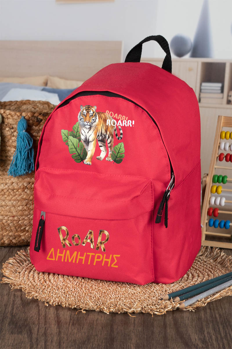 Σχολική Τσάντα Πλάτης Νηπιαγωγείου σε Κόκκινο Χρώμα, Tiger