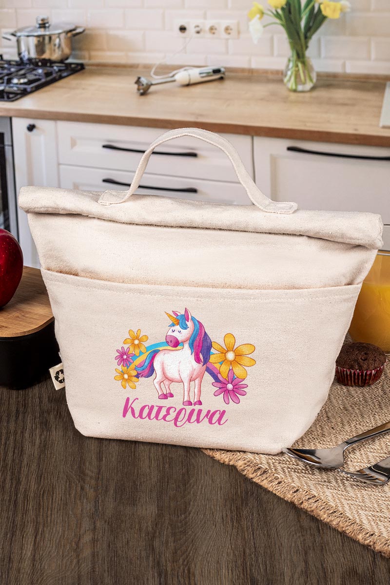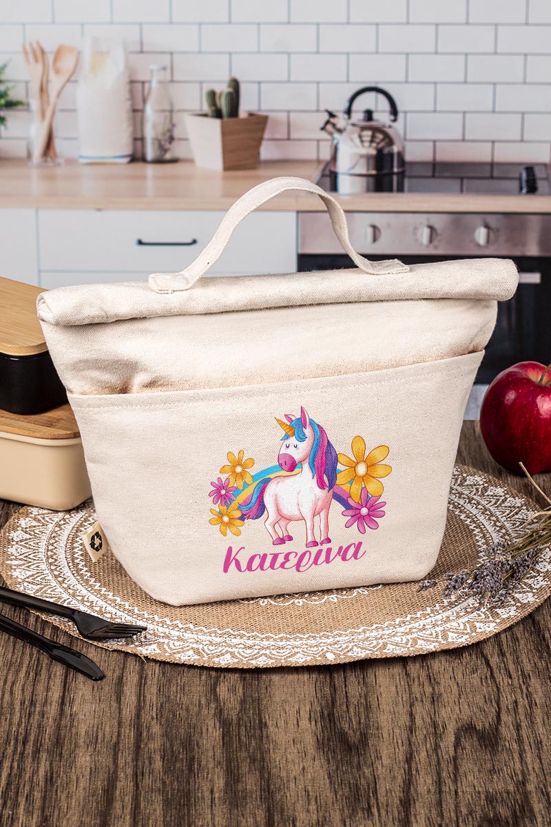 Ισοθερμικό Τσαντάκι Φαγητού με το Όνομα του Παιδιού, Floral Unicorn