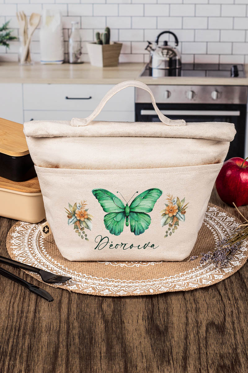 Ισοθερμικό Τσαντάκι Φαγητού Παιδικό με Όνομα, Green Butterfly