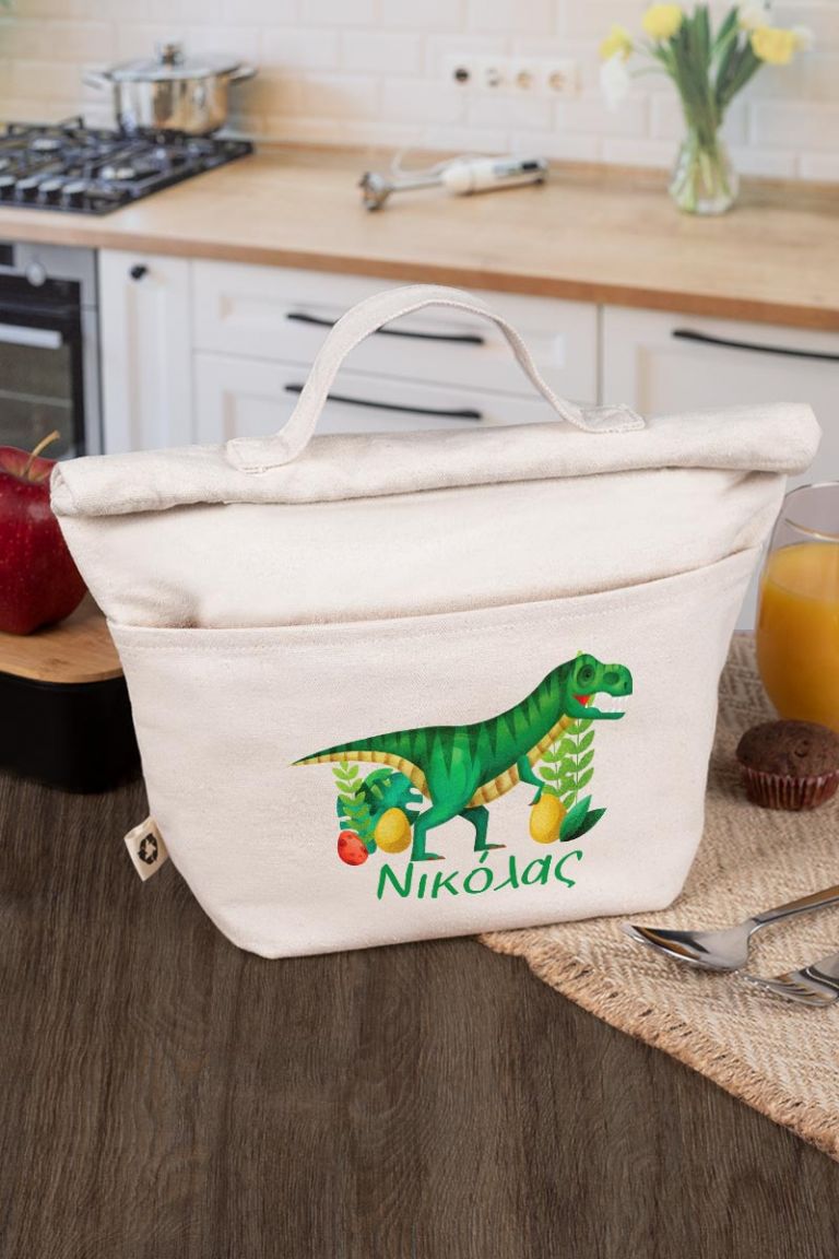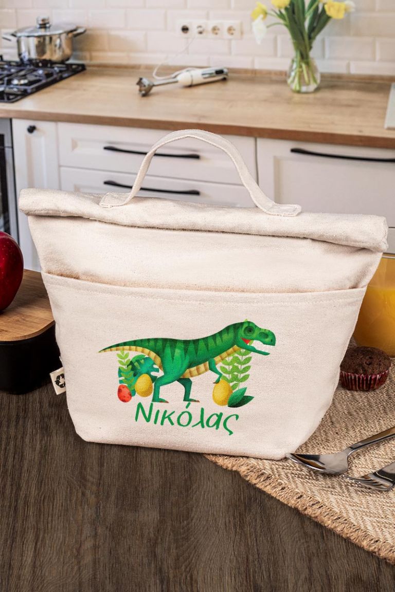 Ισοθερμικό Τσαντάκι Φαγητού με το Όνομα του Παιδιού, Green Dino