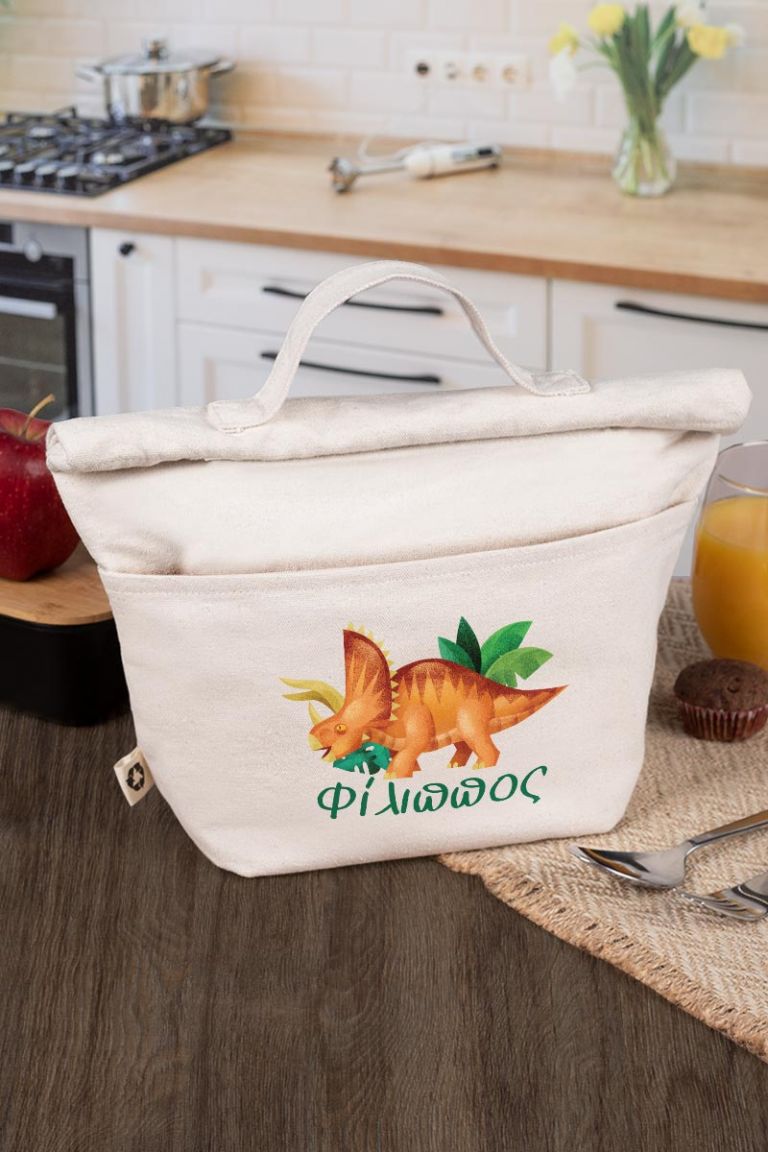 Ισοθερμικό Τσαντάκι Φαγητού με το Όνομα του Παιδιού, Orange Dino