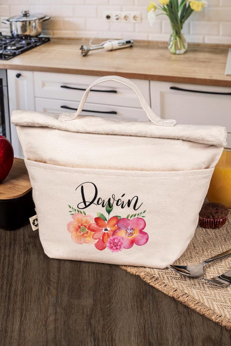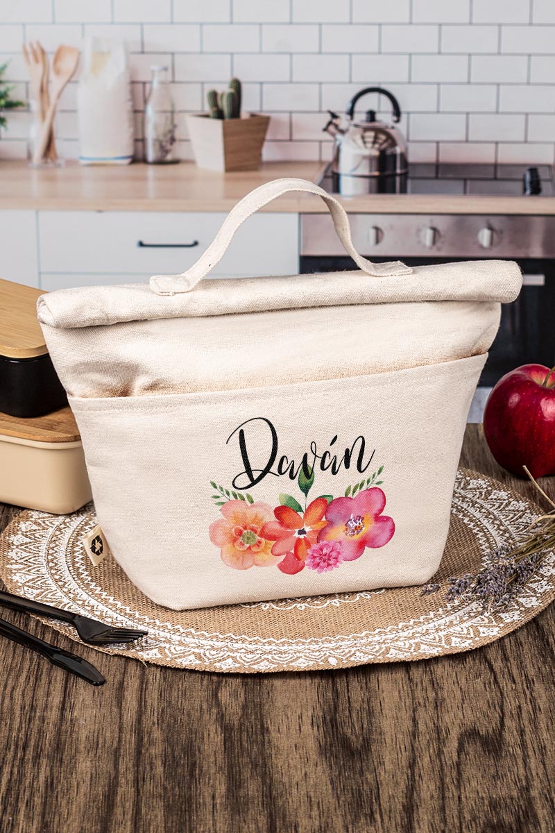 Ισοθερμικό Τσαντάκι Φαγητού με το Όνομα του Παιδιού, Watercolor Flower