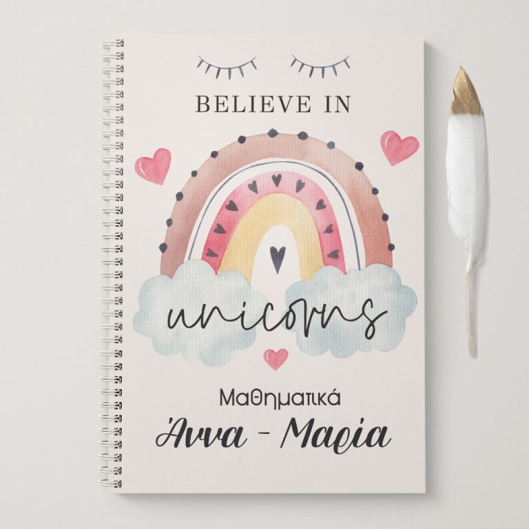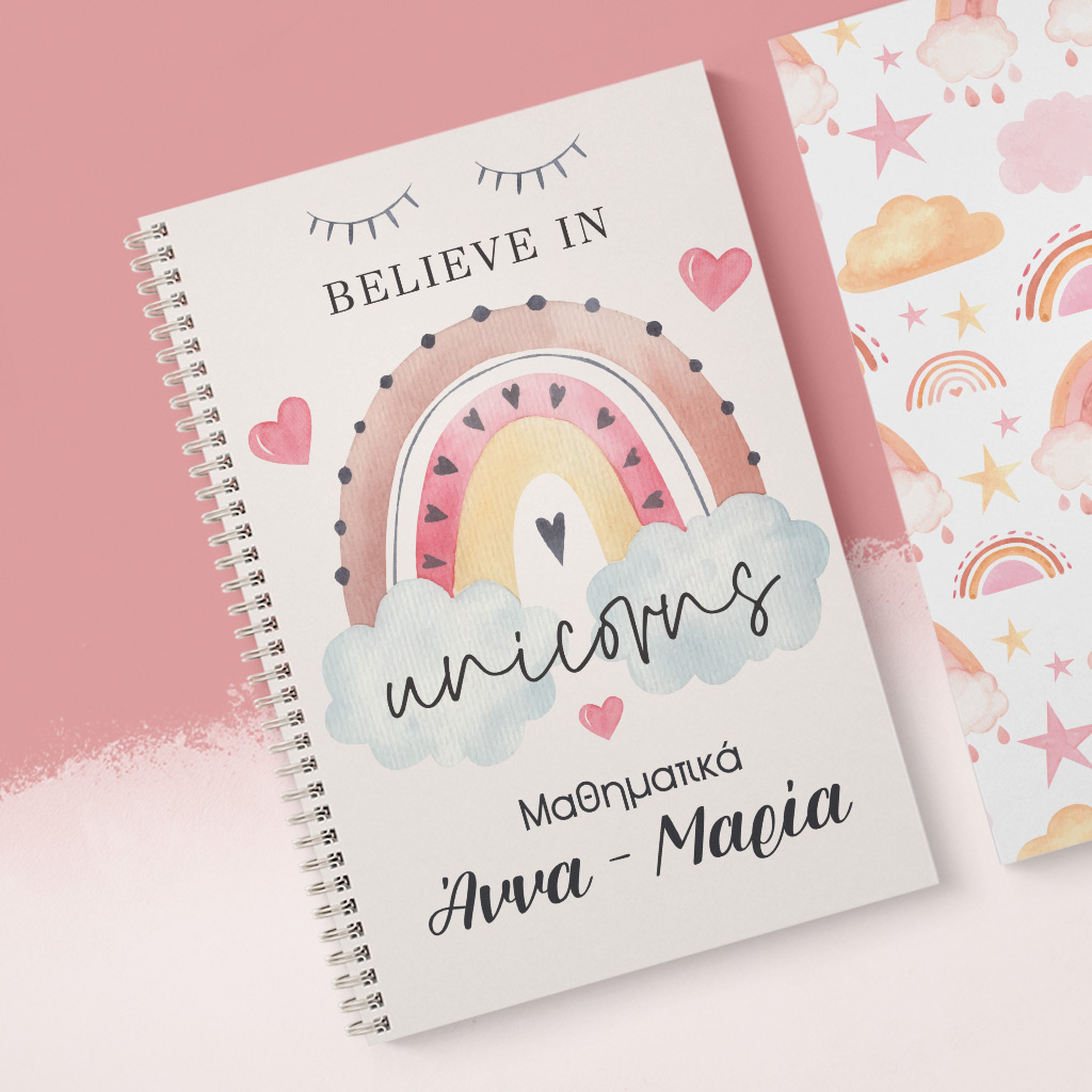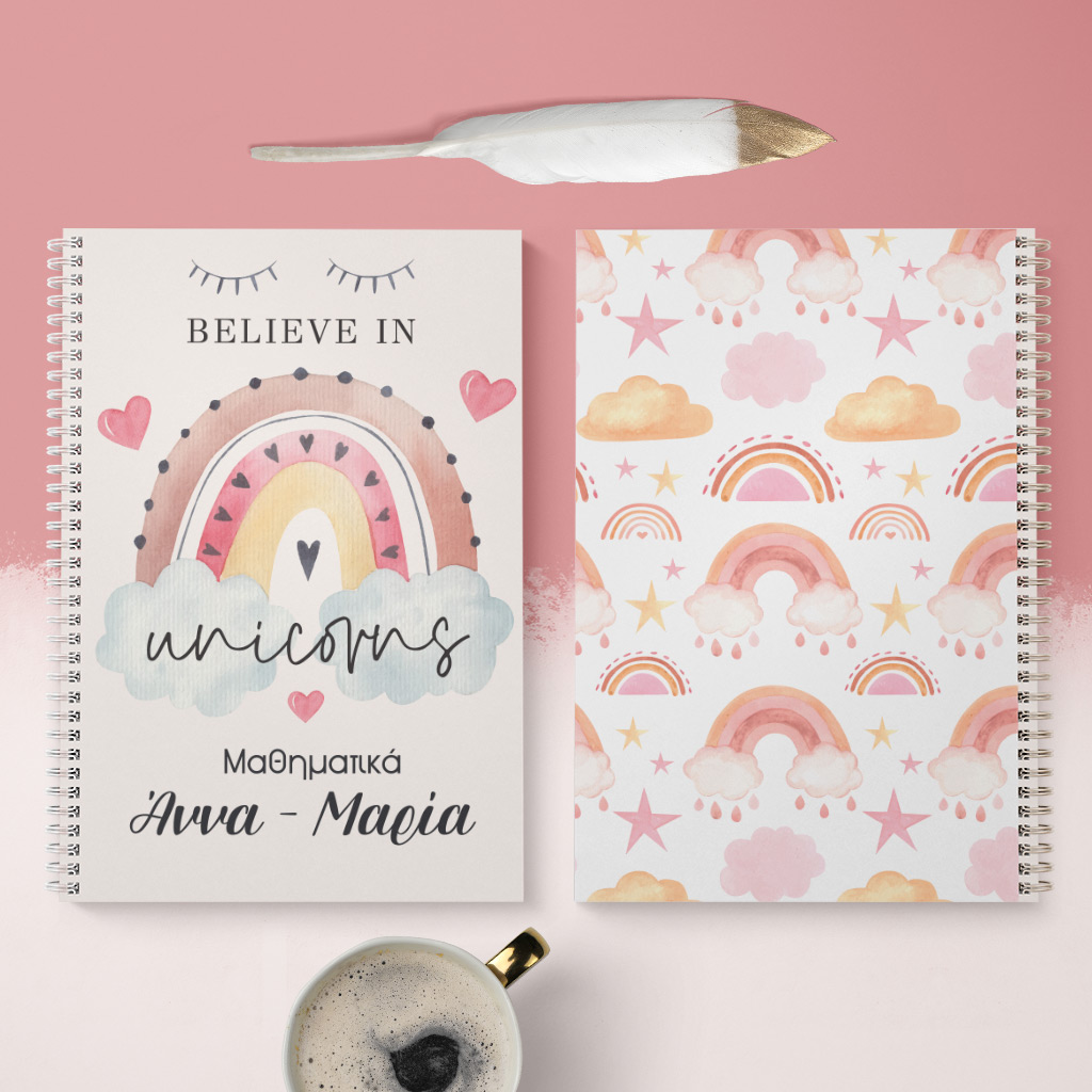 Τετράδιο Προσωποποιημένο με Όνομα και Τίτλο, Unicorn Rainbow