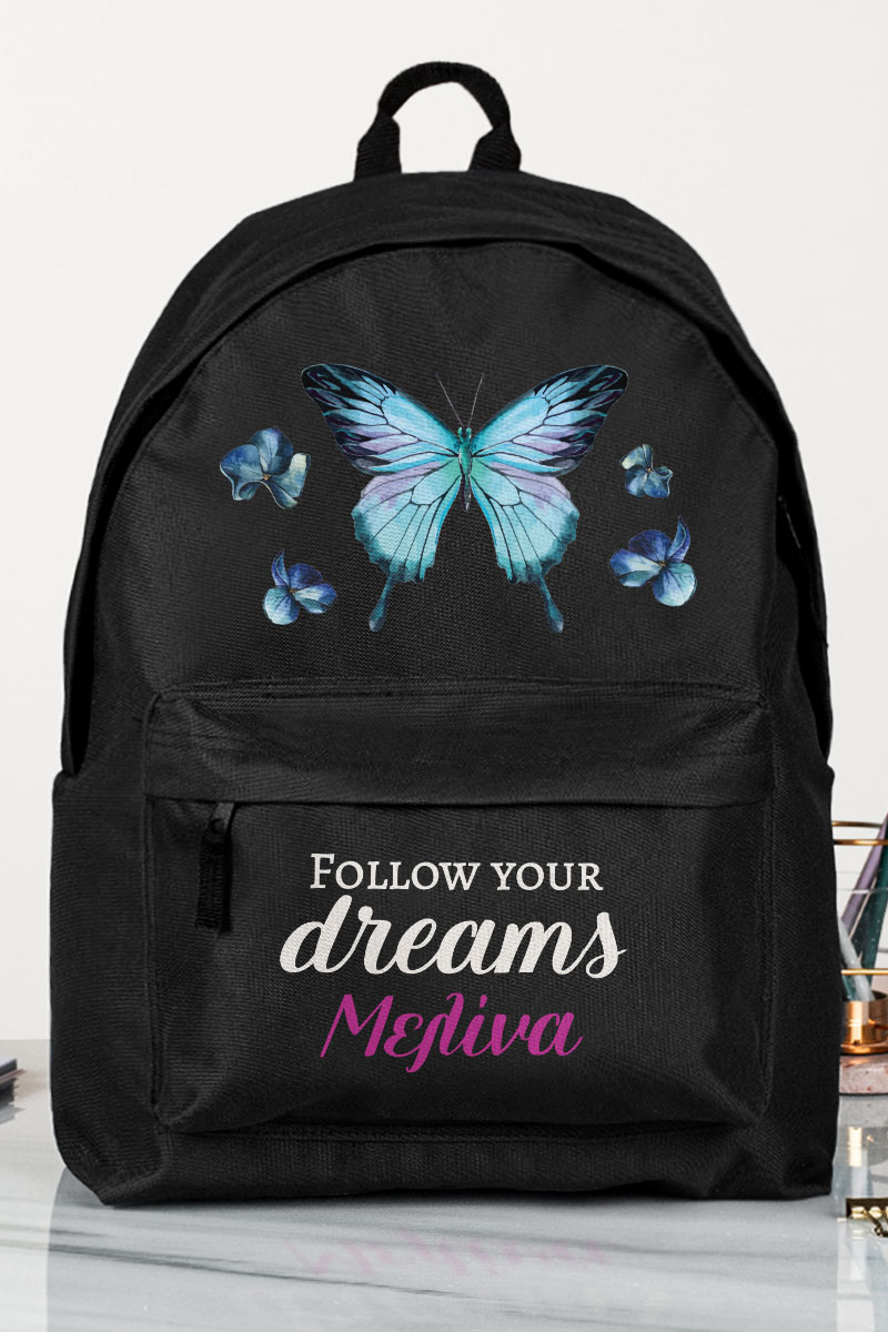 Σχολική Τσάντα Δημοτικού, Μαύρο Χρώμα, Butterfly Fly