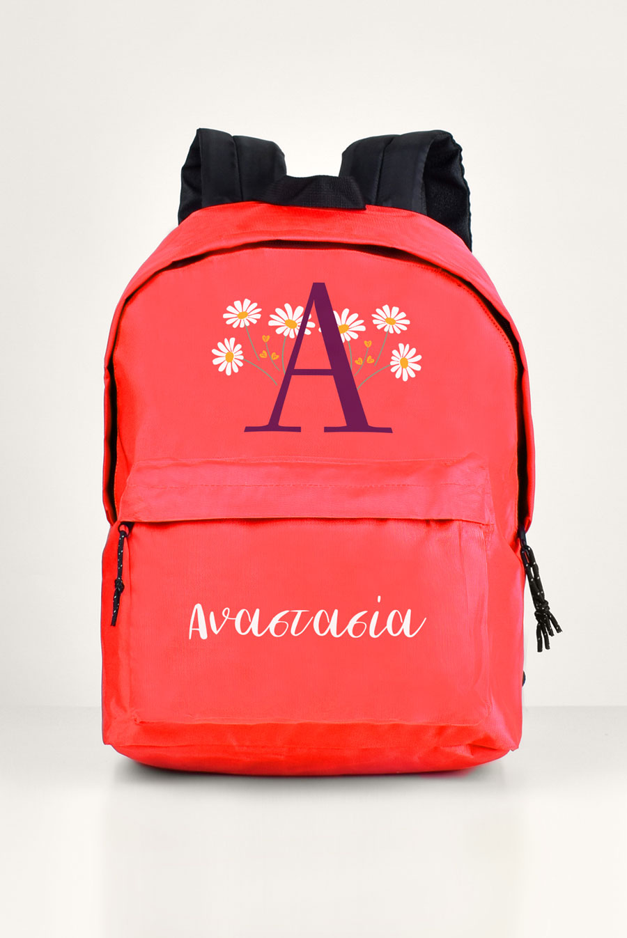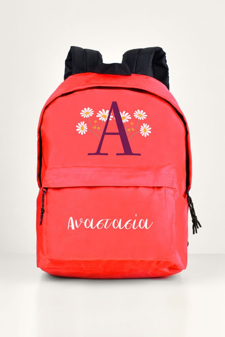 Σχολική Τσάντα Δημοτικού-Γυμνασίου-Λυκείου, Κόκκινο Χρώμα, Flower