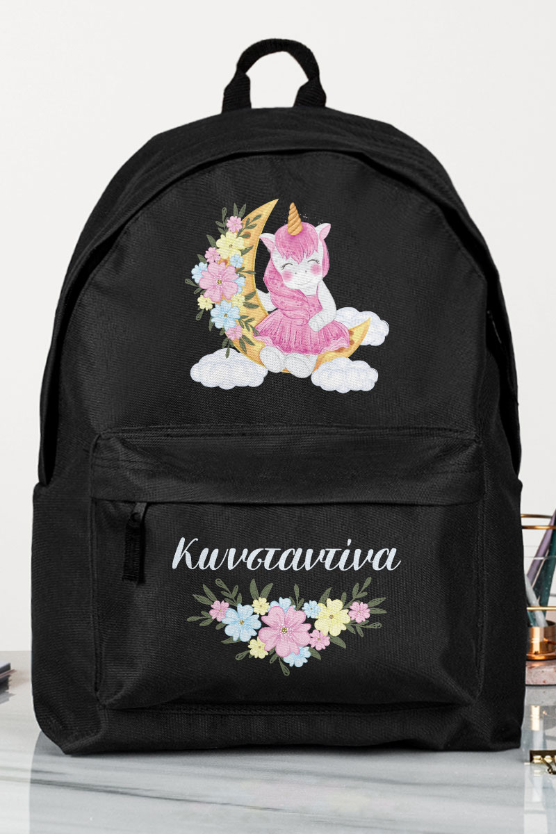 Σχολική Τσάντα Δημοτικού, Μαύρο Χρώμα, Lady Unicorn