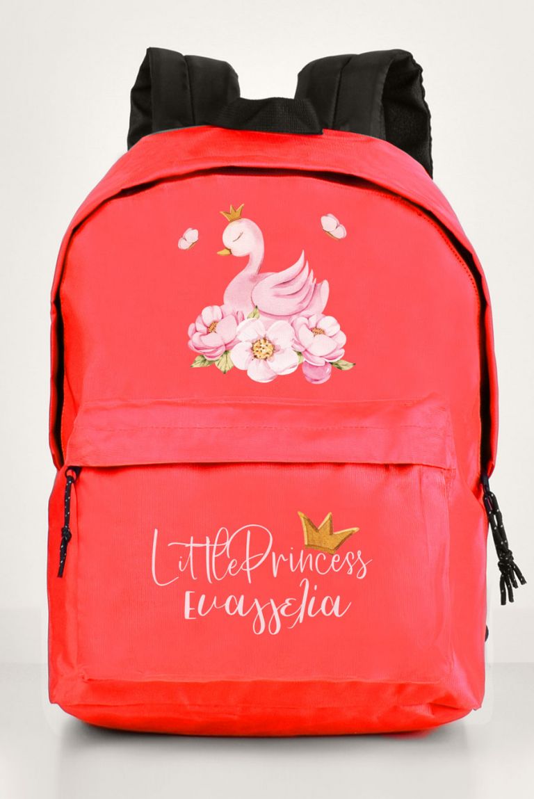 Σχολική Τσάντα Δημοτικού, Κόκκινο Χρώμα, Pink Swan
