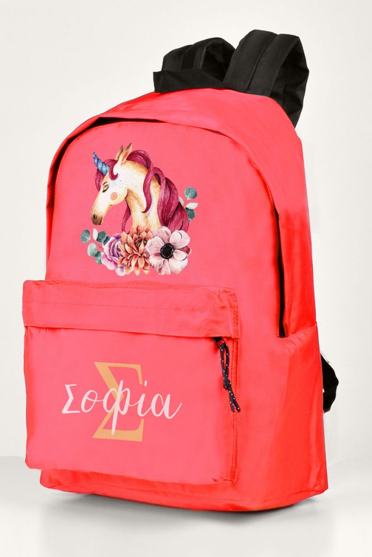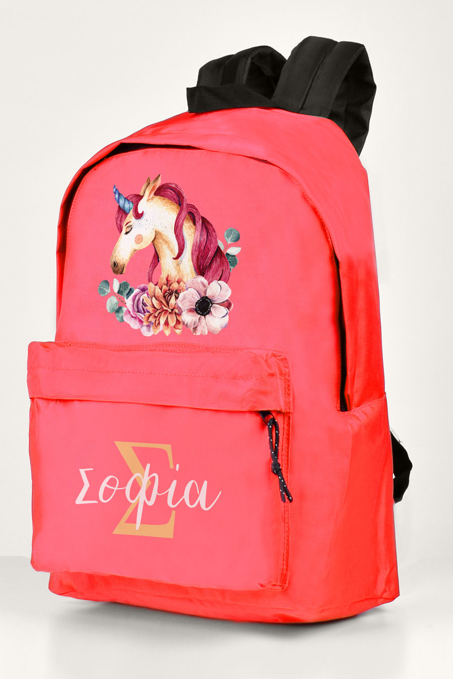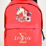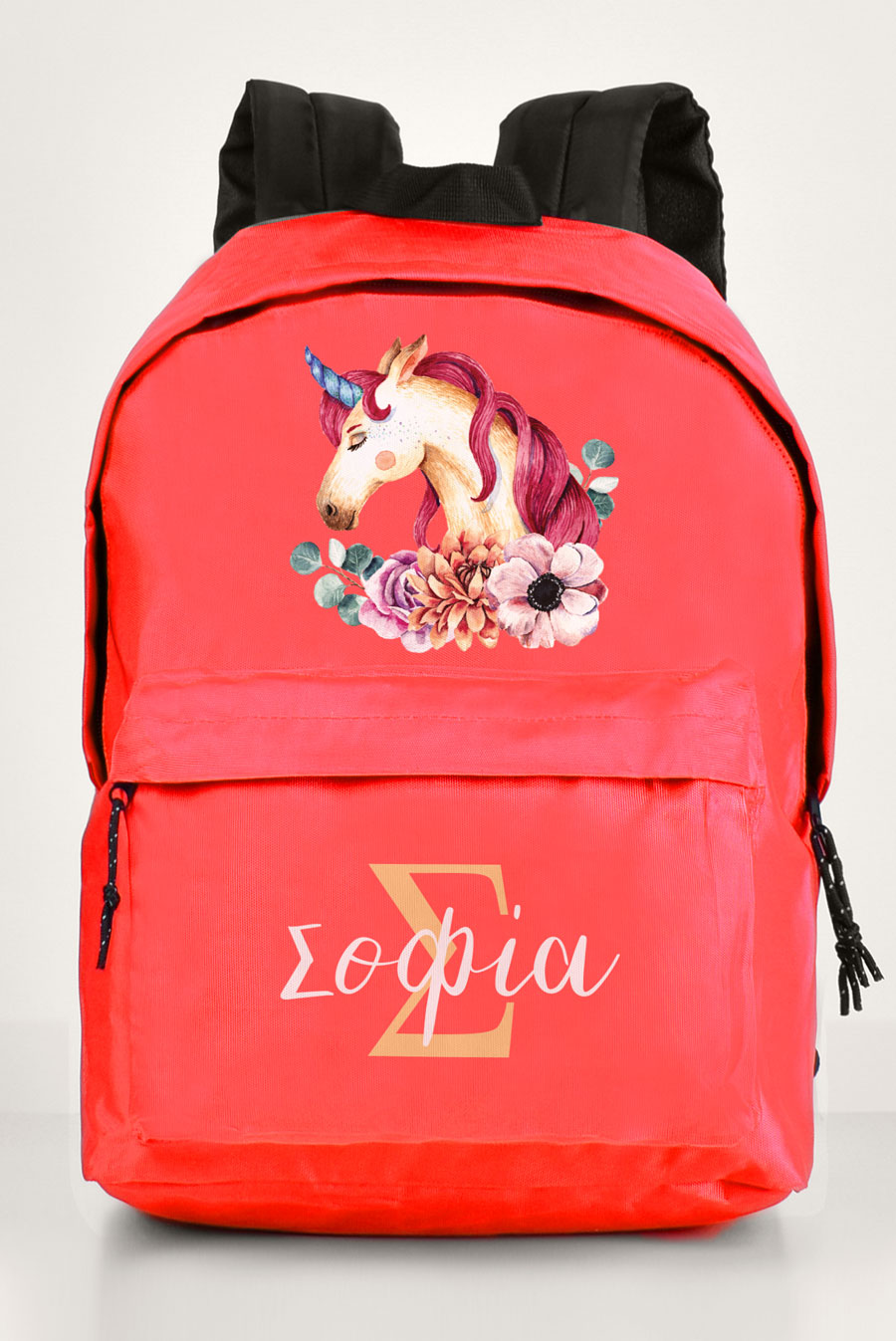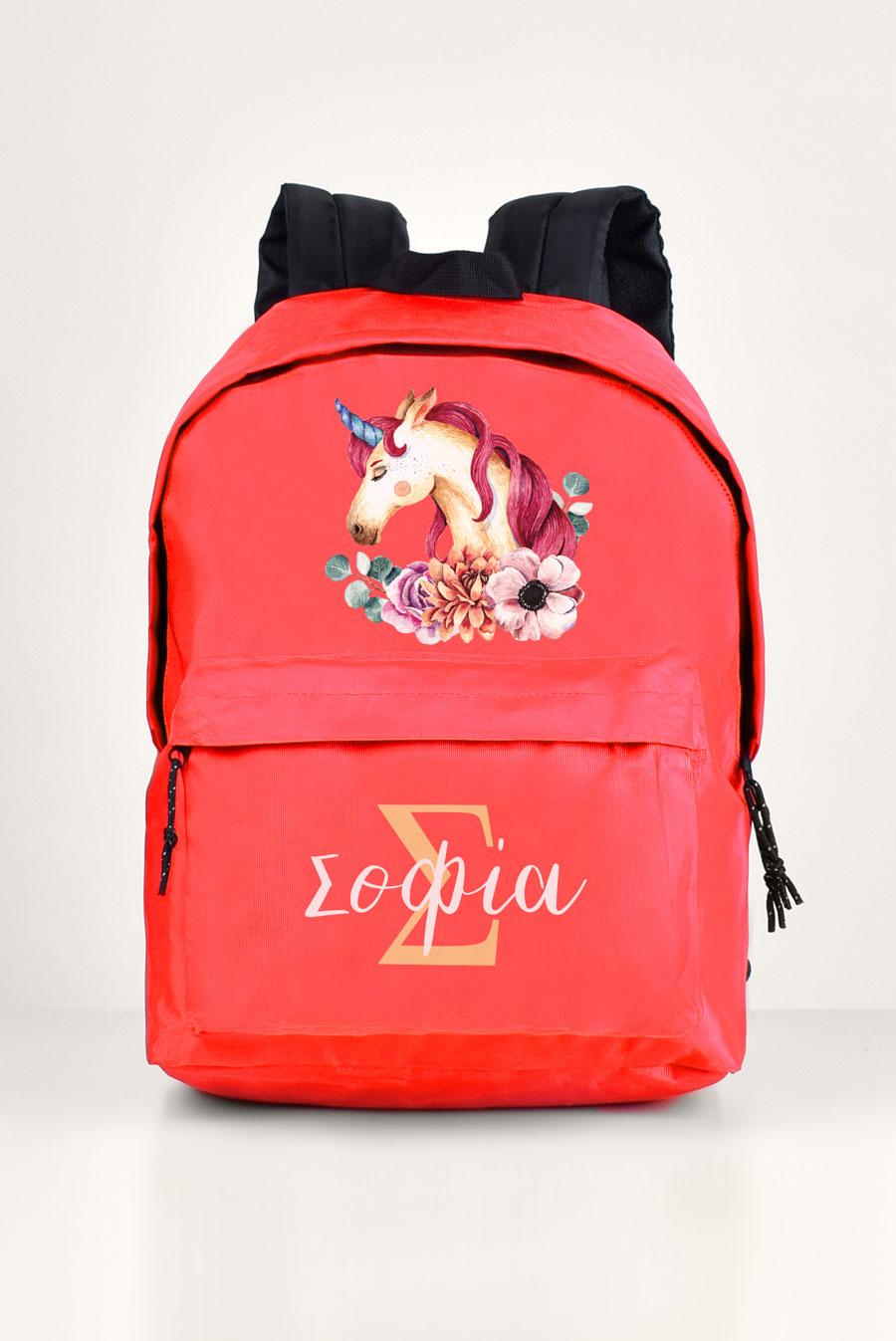 Σχολική Τσάντα Δημοτικού, Κόκκινο Χρώμα, Unicorn Name