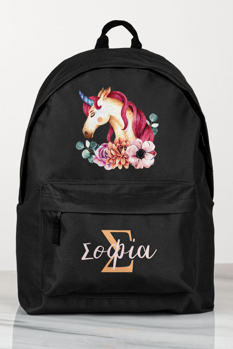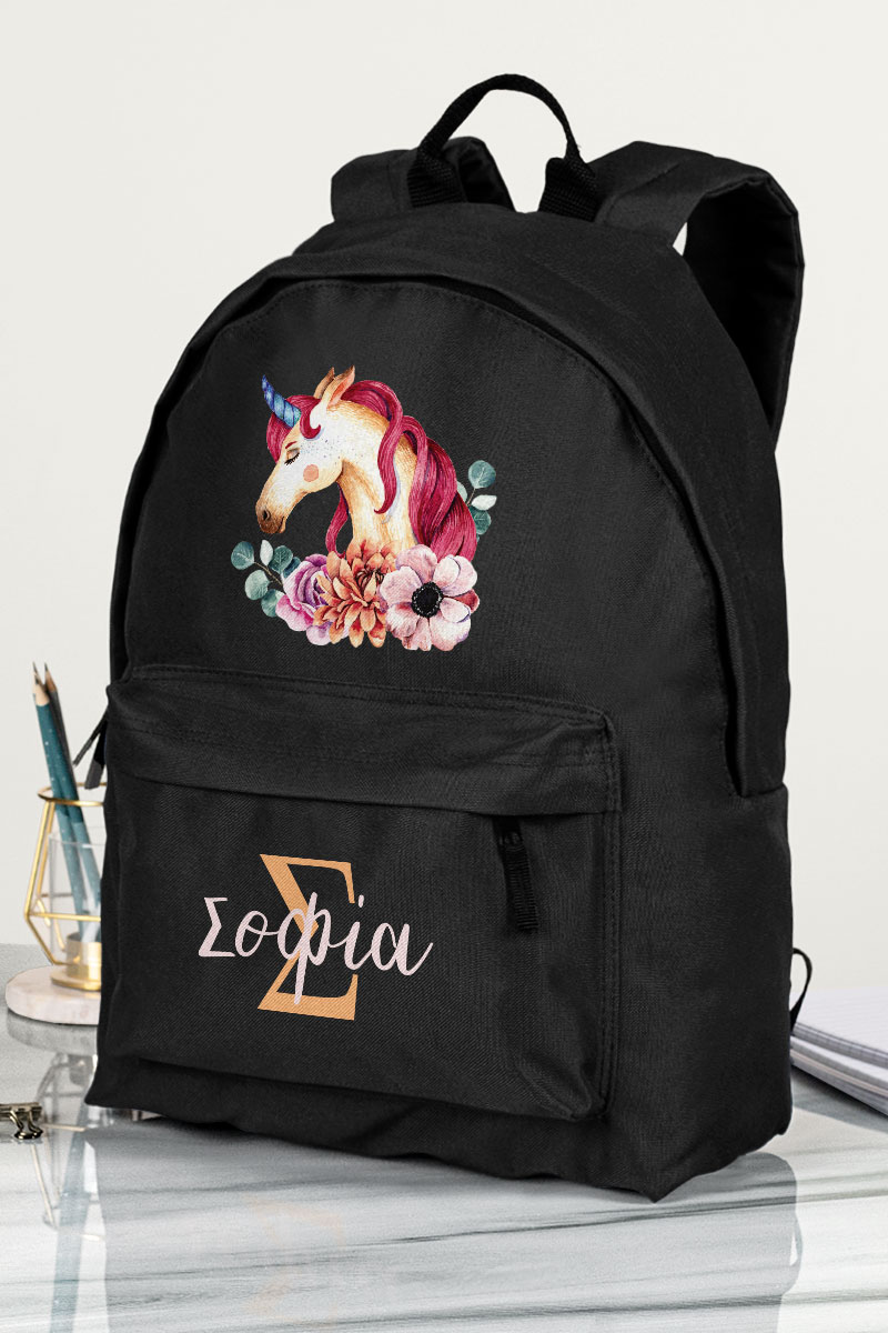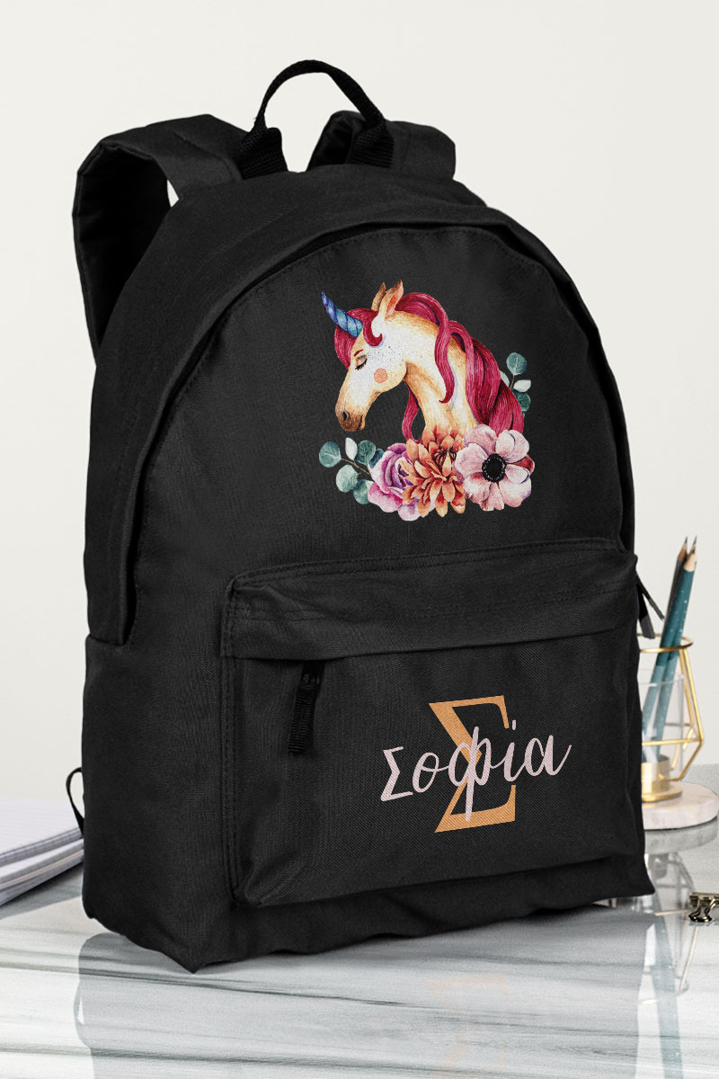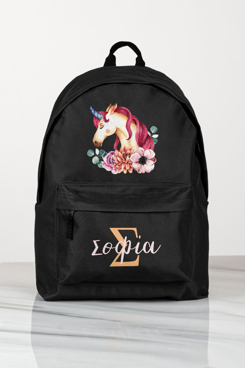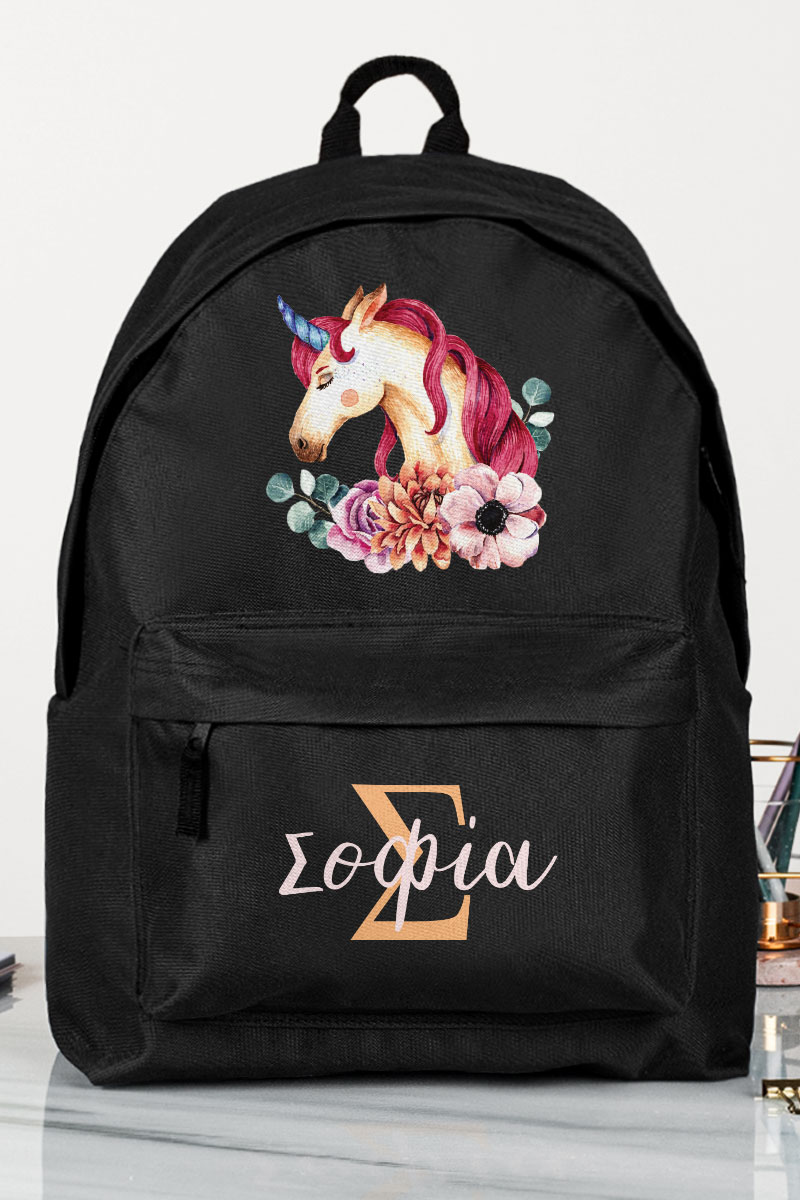 Σχολική Τσάντα Δημοτικού, Μαύρο Χρώμα, Unicorn Name