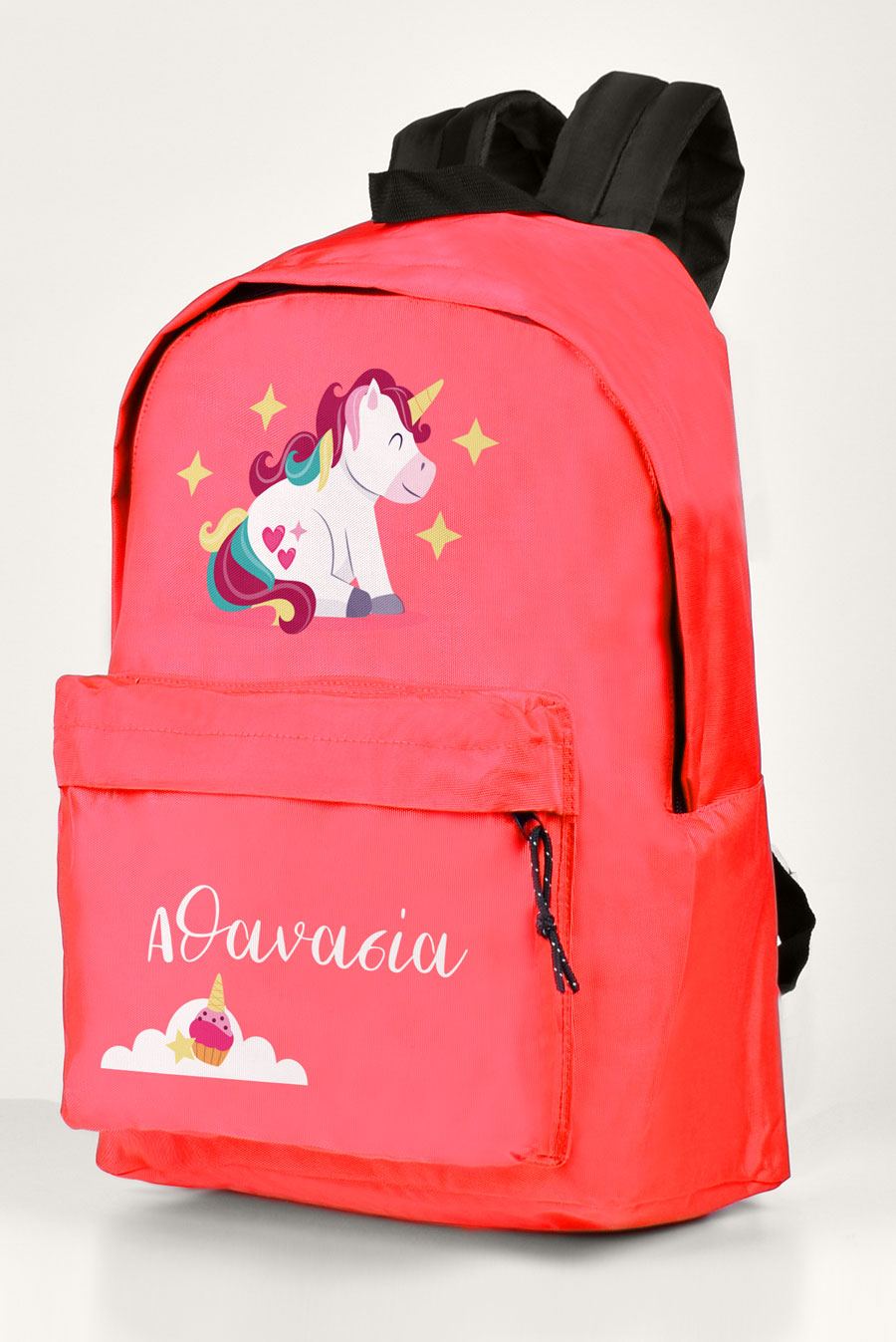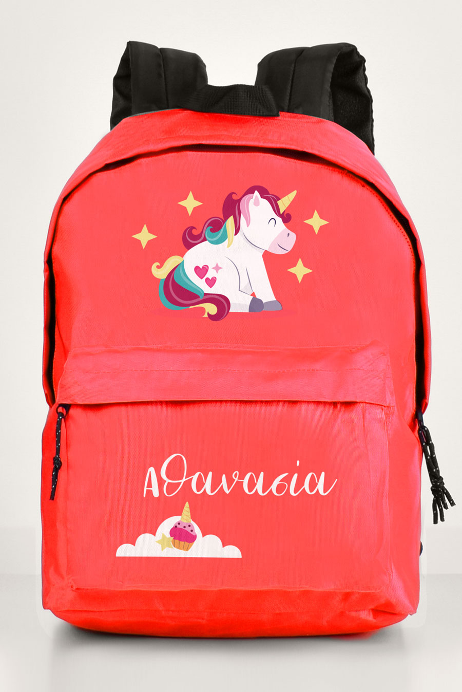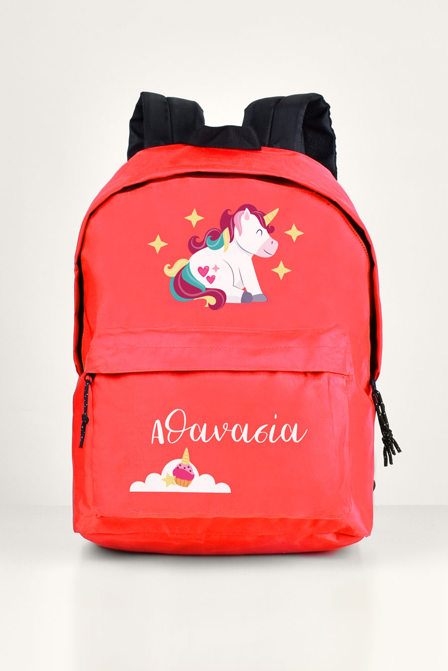 Σχολική Τσάντα Δημοτικού, Κόκκινο Χρώμα, Unicorn Smiling