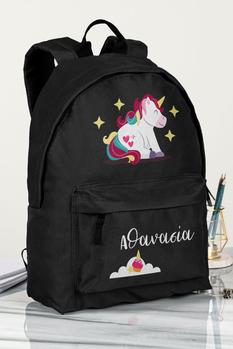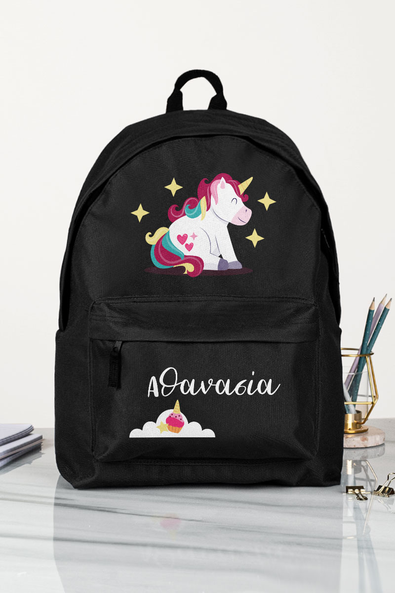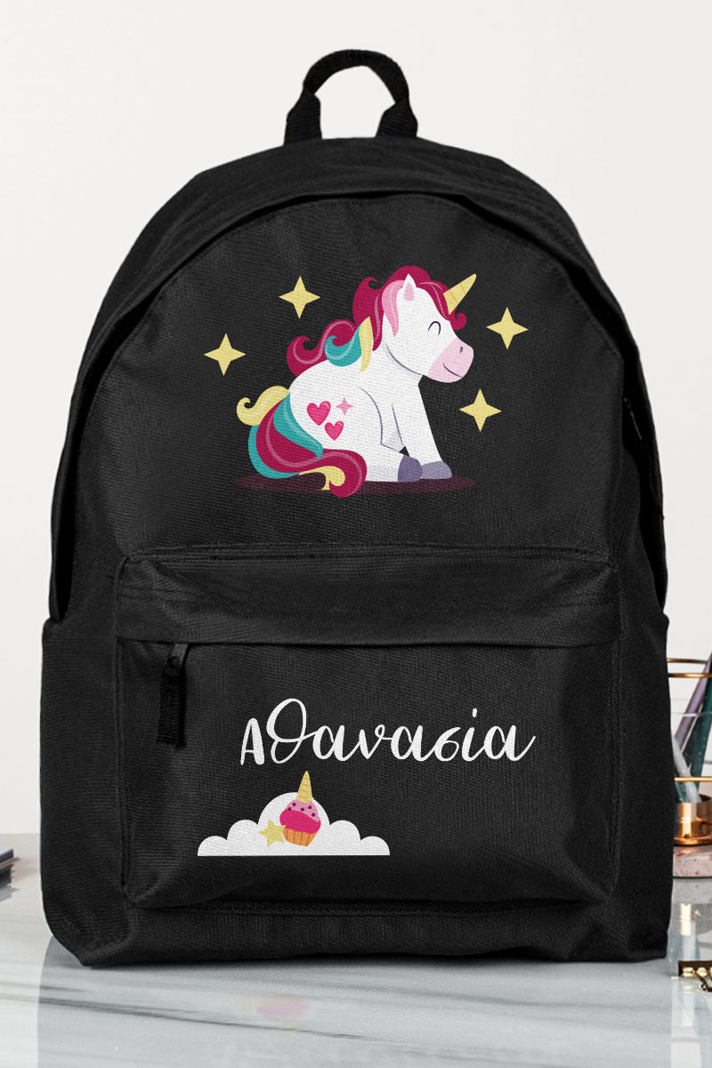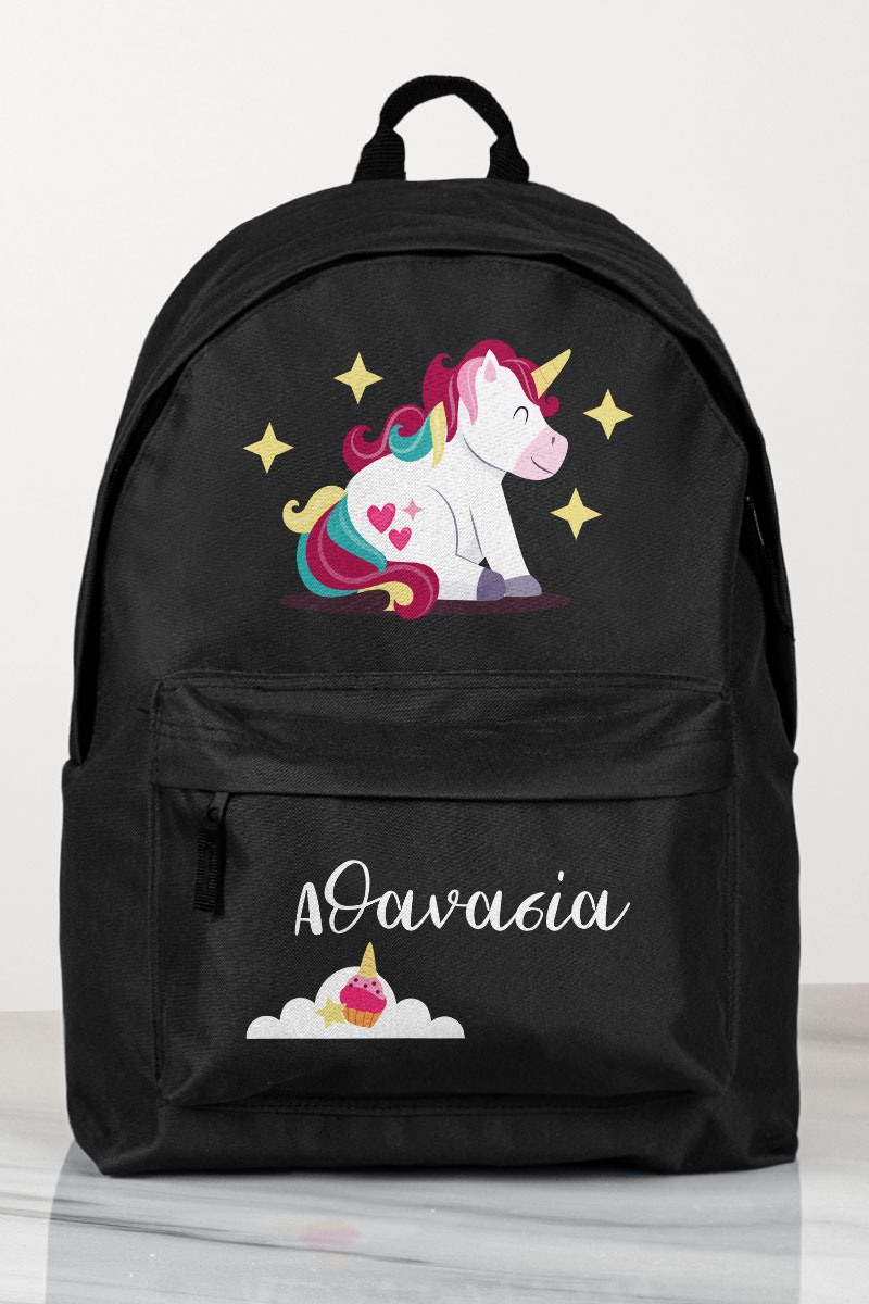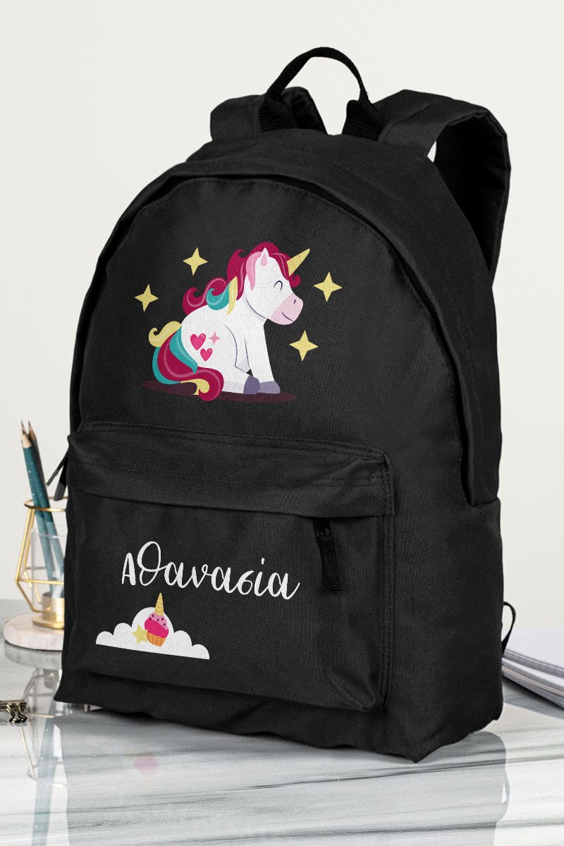 Σχολική Τσάντα Δημοτικού, Μαύρο Χρώμα, Unicorn Smiling