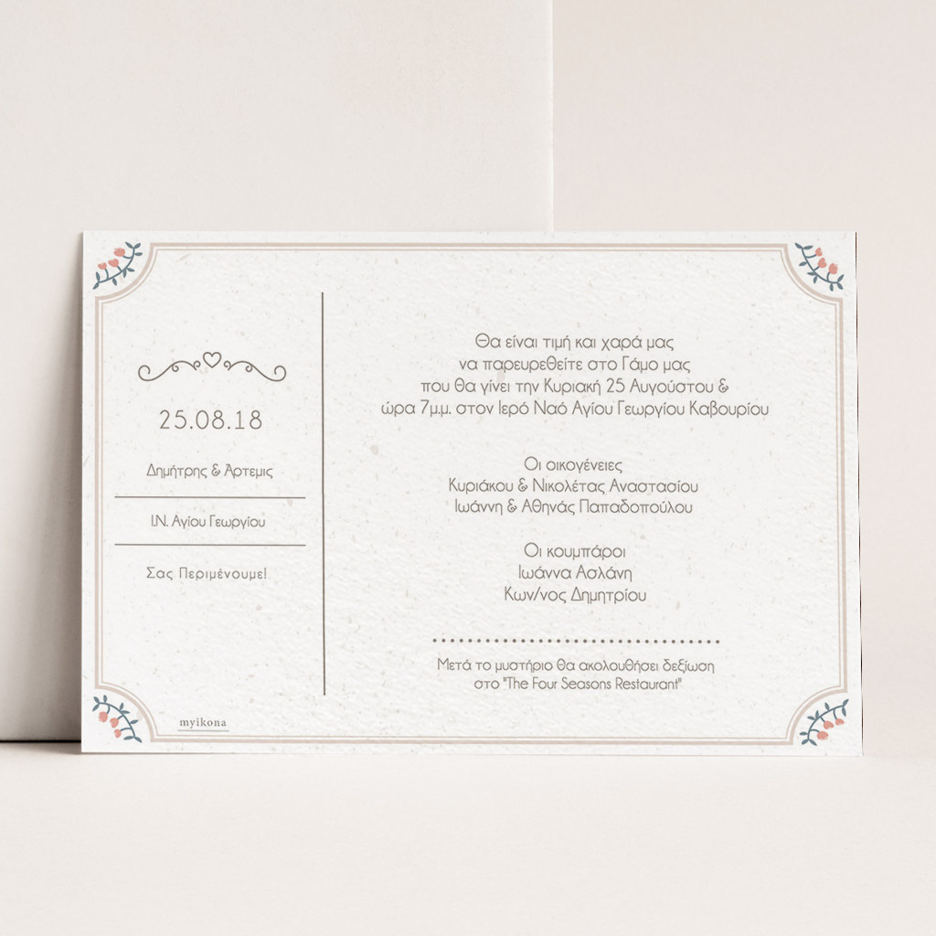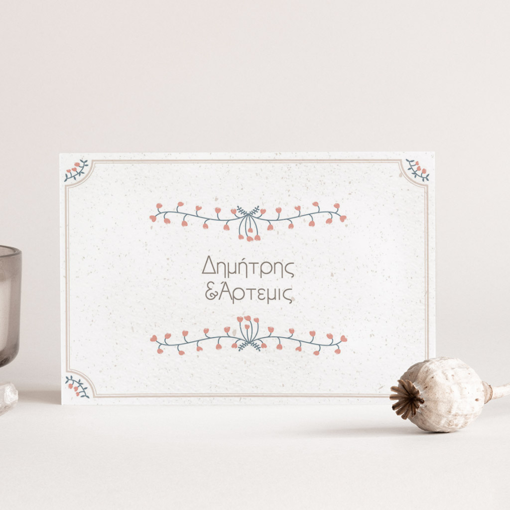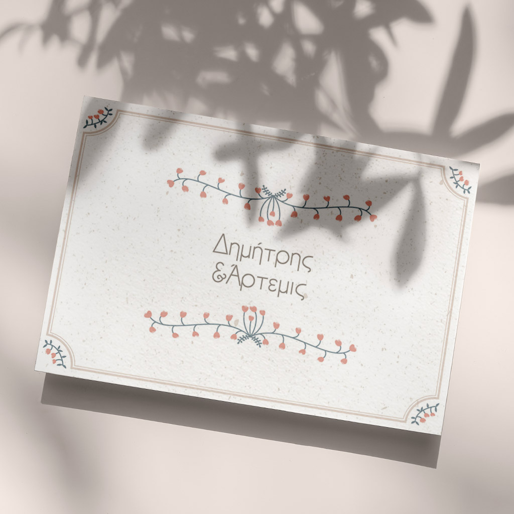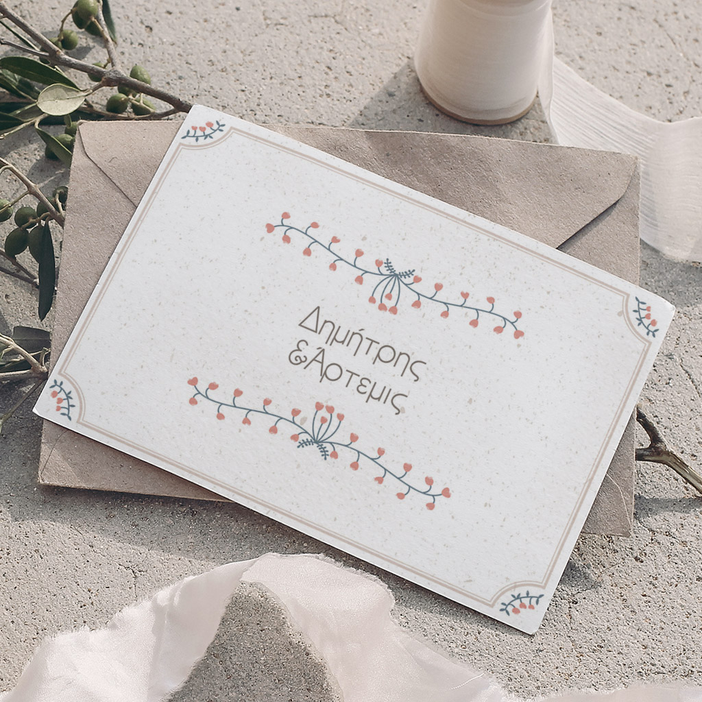 Αποκτήστε τα προσκλητήρια γάμου με σχέδιο Minimal Ανθισμένα Λουλούδια. Οι πελάτες μας τα ξεχωρίζουν για το υψηλής ποιότητας ιταλικό χαρτί και την εκτύπωση υψηλής ευκρίνειας Myikona High Definition. Διαθέσιμα σε διαφορετικές διαστάσεις.